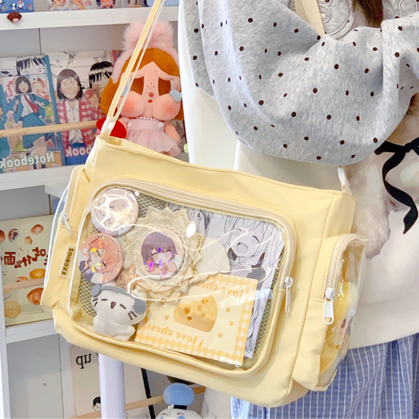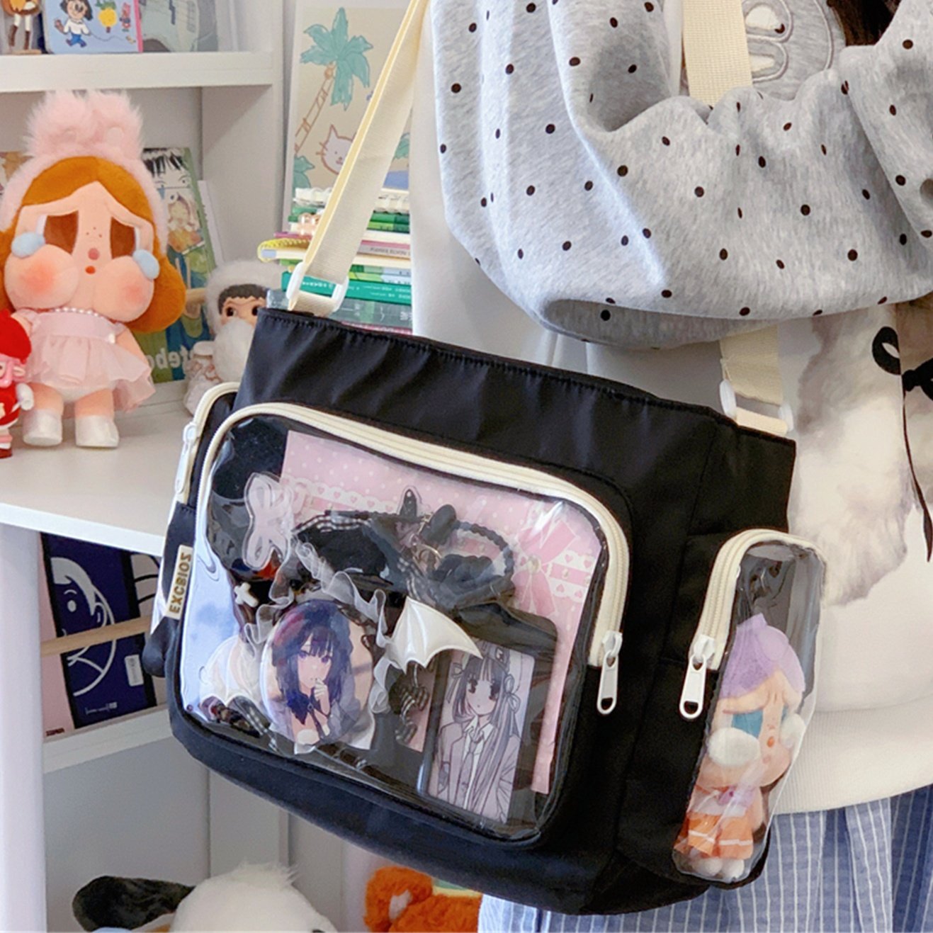 Large Capacity Tote Bag, High-Value Tutoring Bag, Cute Daily Tote Bag for Female Students, Anime-Style Handbag, Includes a Clipboard