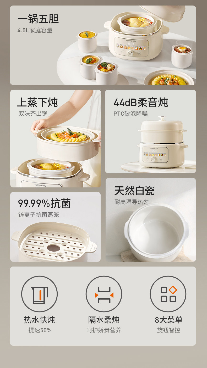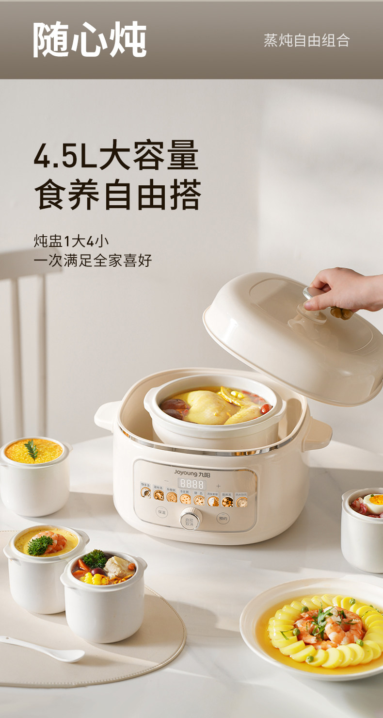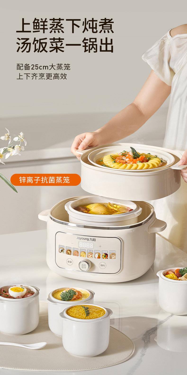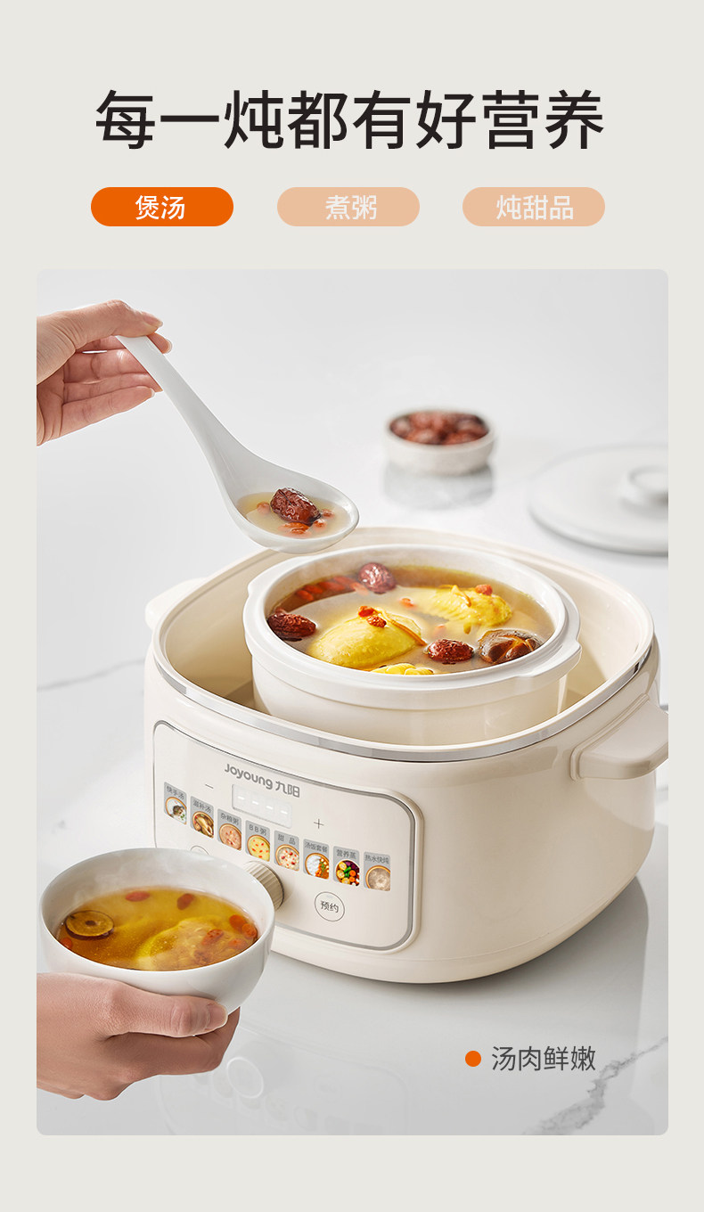 Joyoung Electric Stew Pot, Water-Sealed Stewing Pot for Home Use, Automatic Soup Pot, Bird's Nest Cooking, Porridge, Baby Food, Multifunctional Ceramic Pot