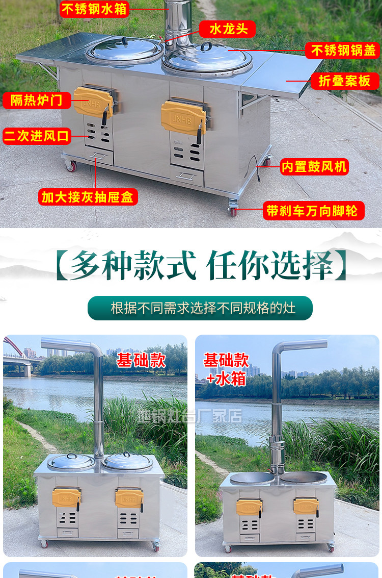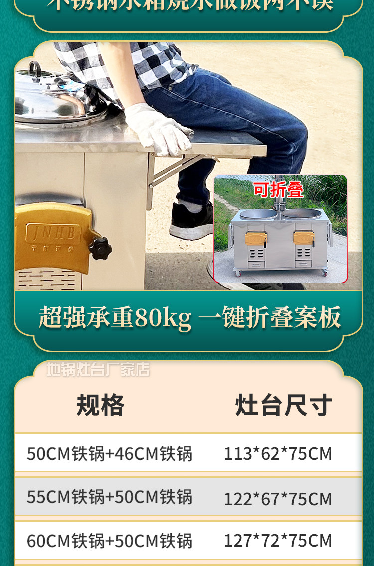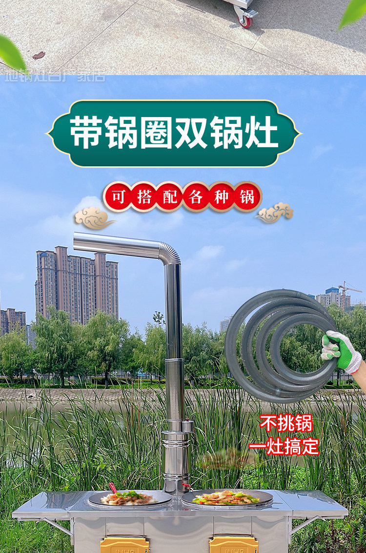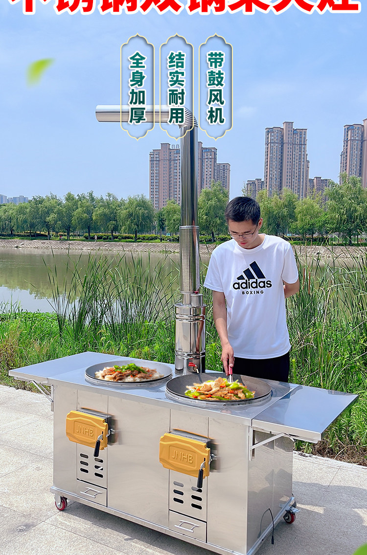 2025 New Model Stainless Steel Rural 304 Wood-Burning Stove Double Stove Mobile Household Wood-Burning Thickened Double Pot Earth Stove