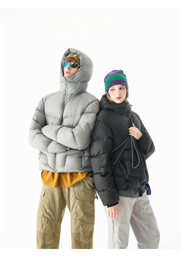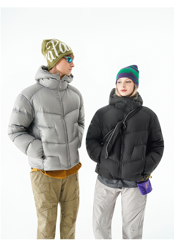 90% White Duck down Outdoor Windproof Hooded down Jacket for Men and Women, Winter Trendy Lightweight Warm Stand-Up Collar Puffer Jacket