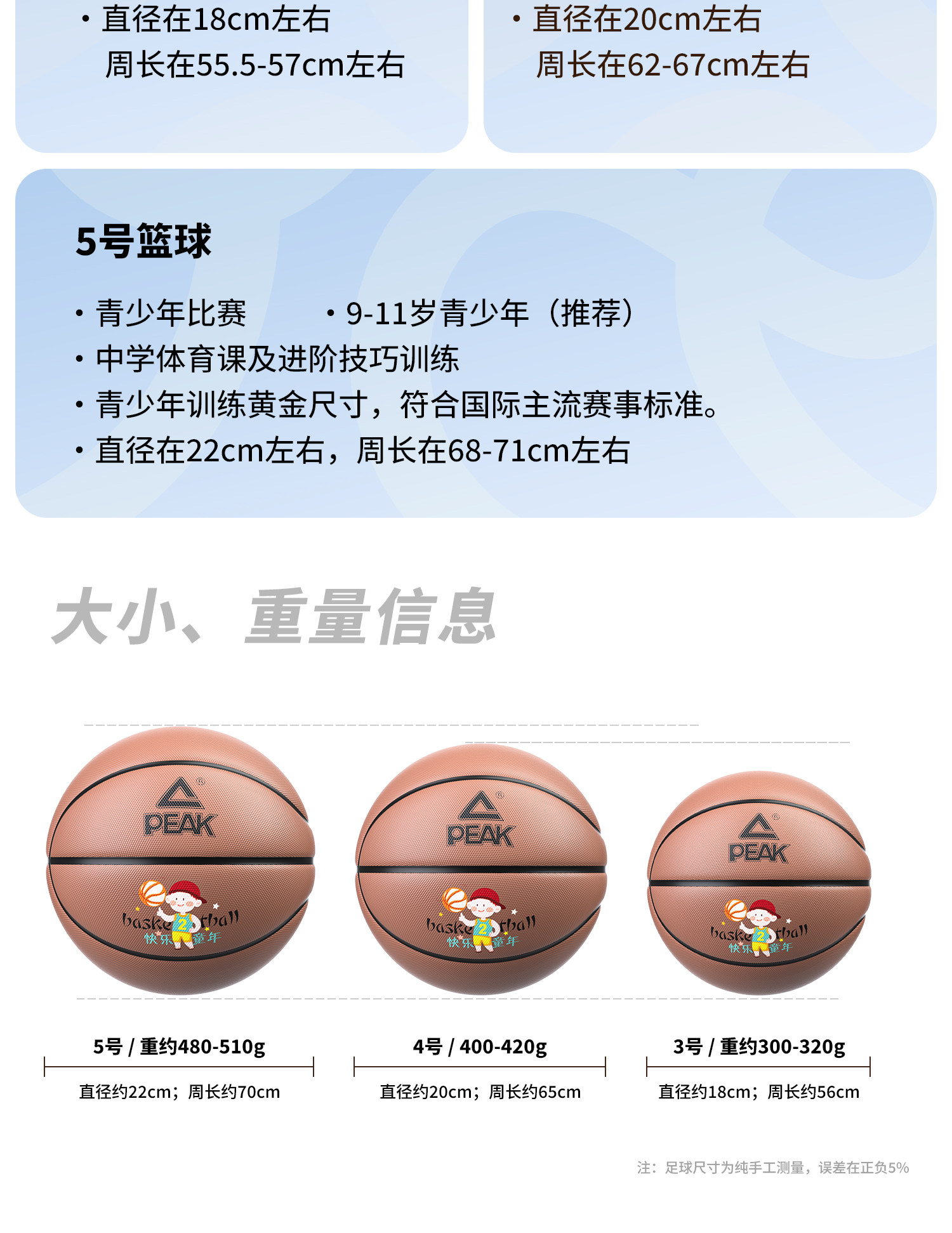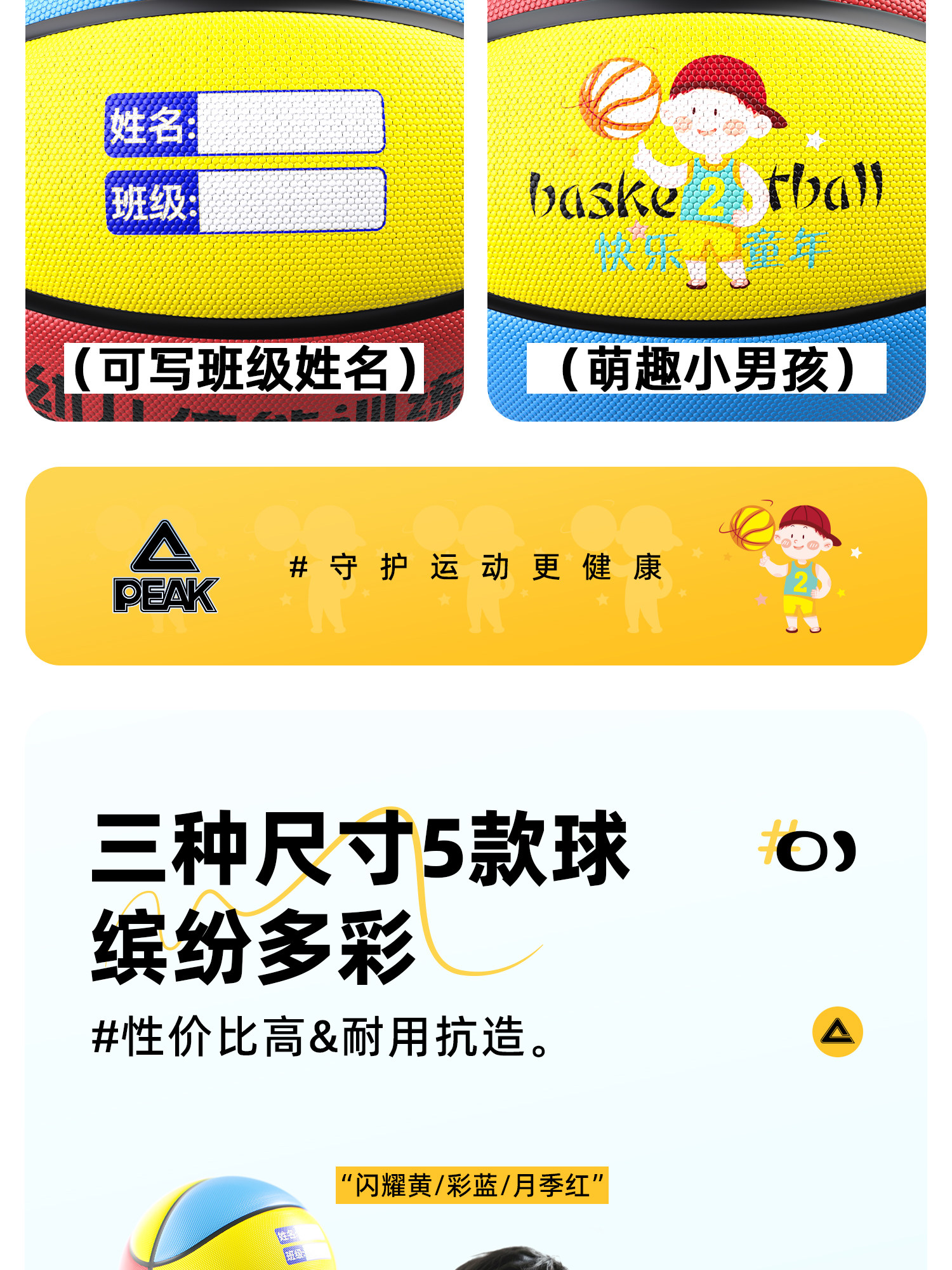 Peak Kidsren's Basketball Kindergarten Baby Primary School Students Beginner Special Size 3-4-5 Training Ball Size 5 Basketball