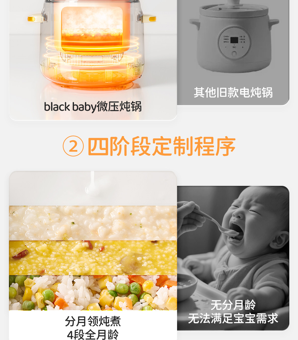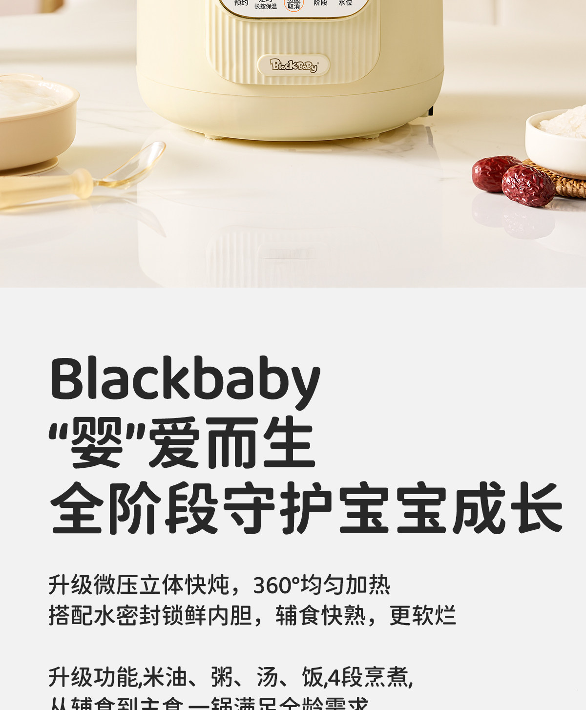 Blackbaby Micro-Pressure Rice Oil Baby Food Supplement Pot, Multifunctional Steaming and Cooking All-In-One, Specially Designed for Babies
