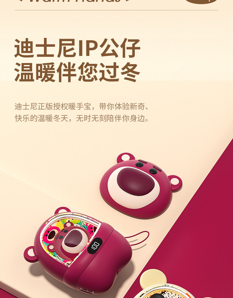 Disney Lotso Hand Warmer Rechargeable 2-in-1 Handheld Self-Heating Baby Warmer Girl's Gift Mini Portable Cute Student Children's Special Hot Water Bottle Warmer for Winter