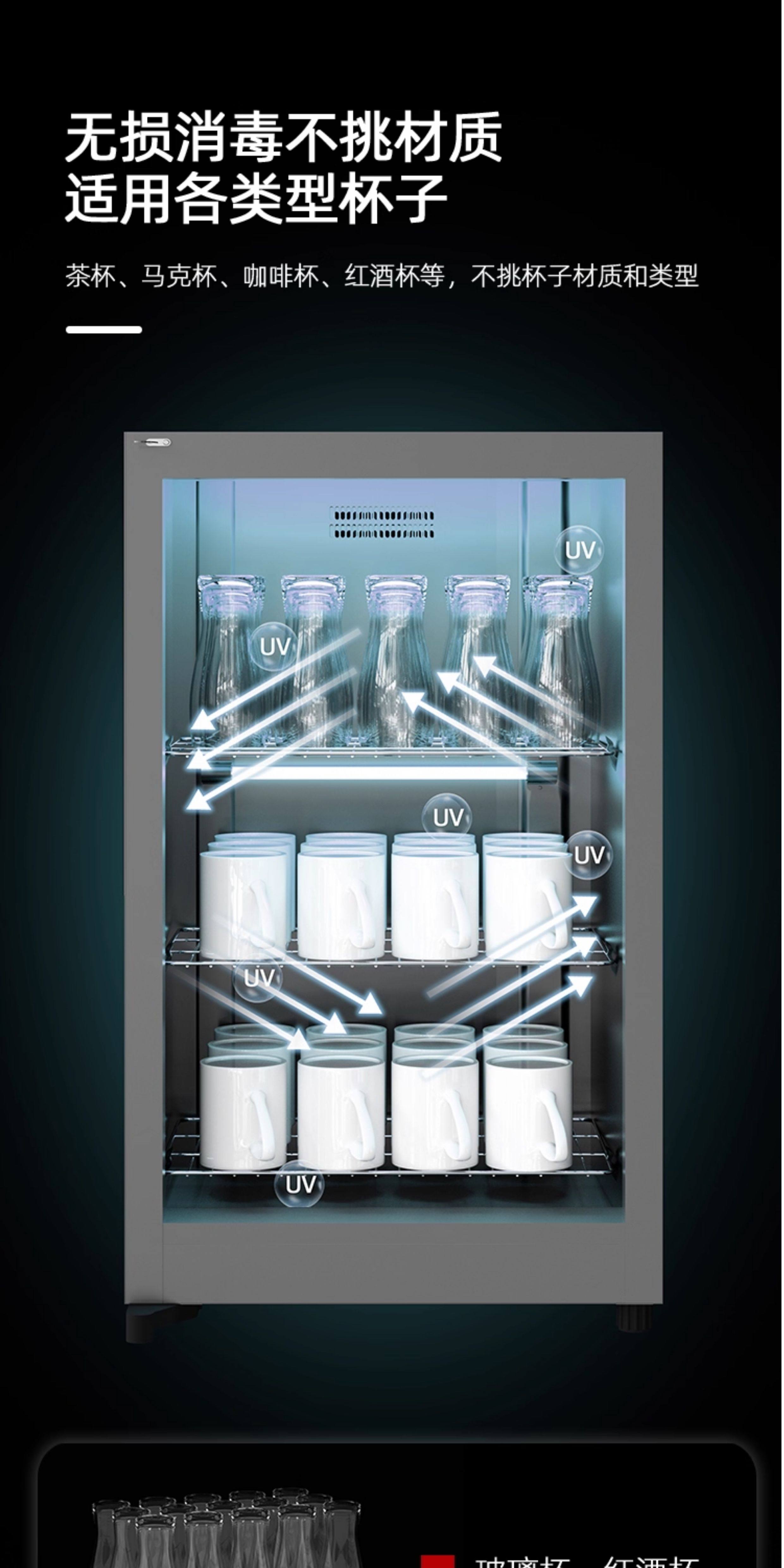 Tea Set Disinfection Cabinet, Commercial Small-Scale Catering Tea Cup Sterilizer, Office Vertical Ultraviolet Sterilizer with Integrated Dryer