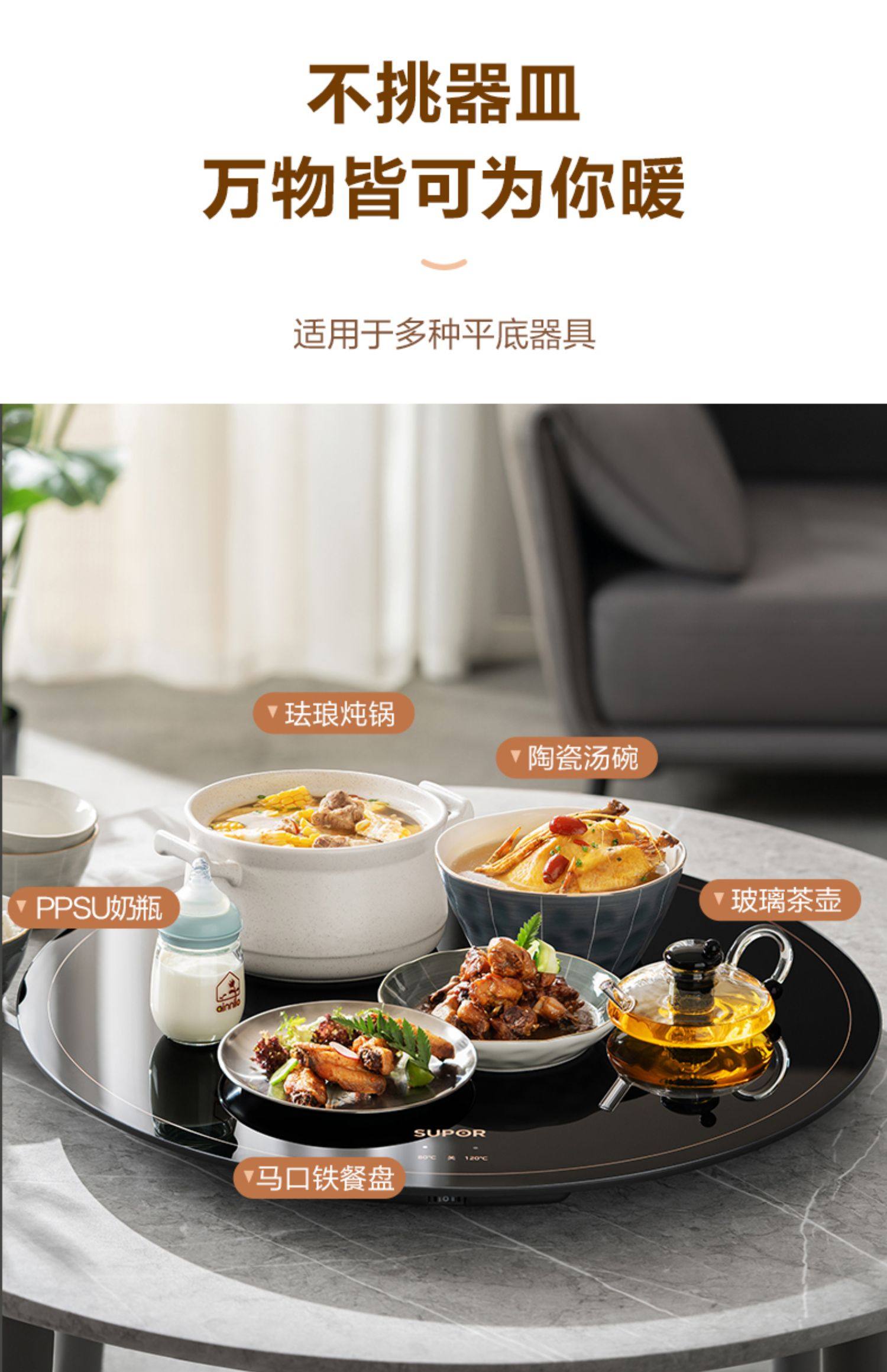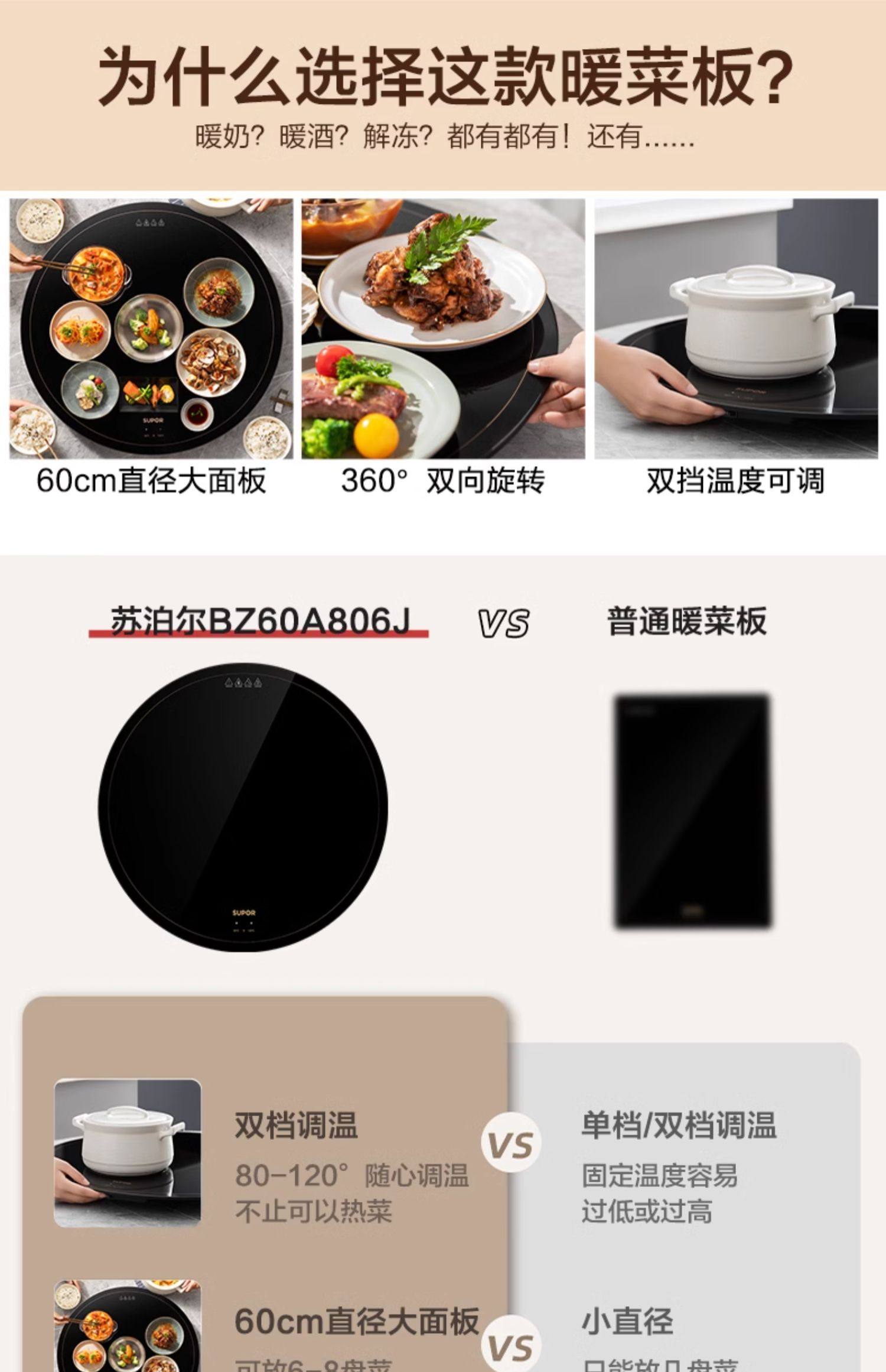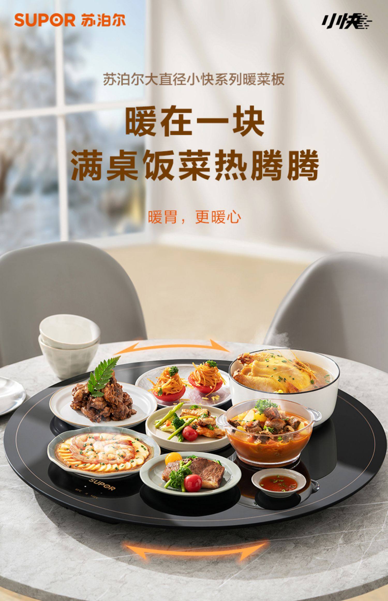 Supor Warming Plate, Hot Plate, Insulation Plate, Round Multifunctional Household Dining Table Rotating Plate, 2026 New Model