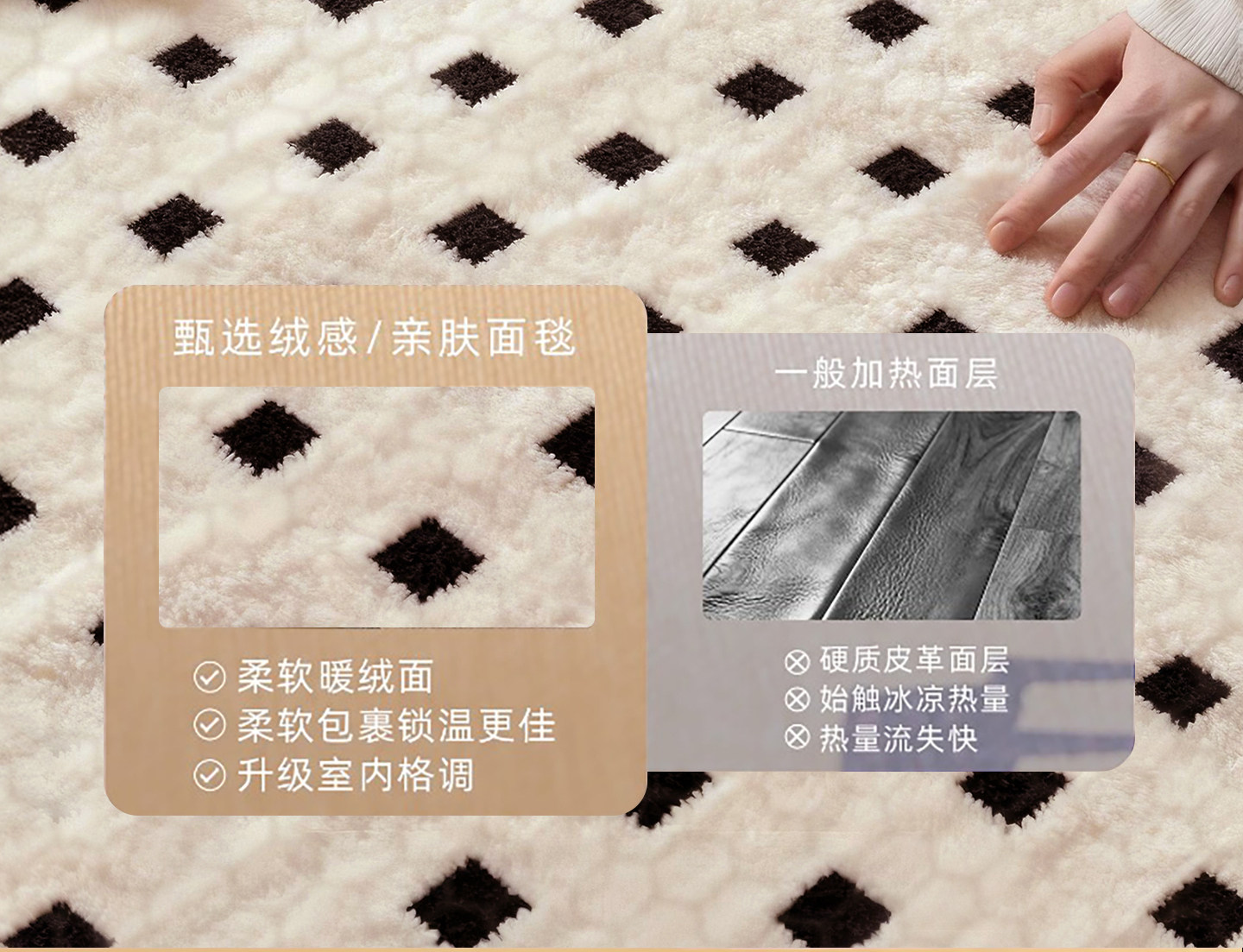 | Color Classification | No Advertising: [8 Major National Security Certifications] 0 Formaldehyde Is Safer✔️,Do Not Take Photos for Advertising: [ Door-To-Door Delivery] Fast Next-Day Delivery✅Ready Stock Shipped in Seconds on the Same Day✅Buy Today, Arrive Tomorrow✅Nationwide Multi-Warehouse Delivery,Classic Black and White Checkered [Imitation Cashmere Material] Removable and Washable Graphene Floor Heating Pad,Simple Curve [Imitation Cashmere Material] Removable and Washable Graphene Floor Heating Pad |