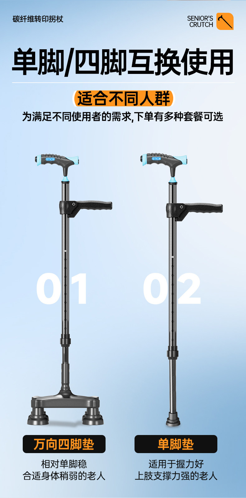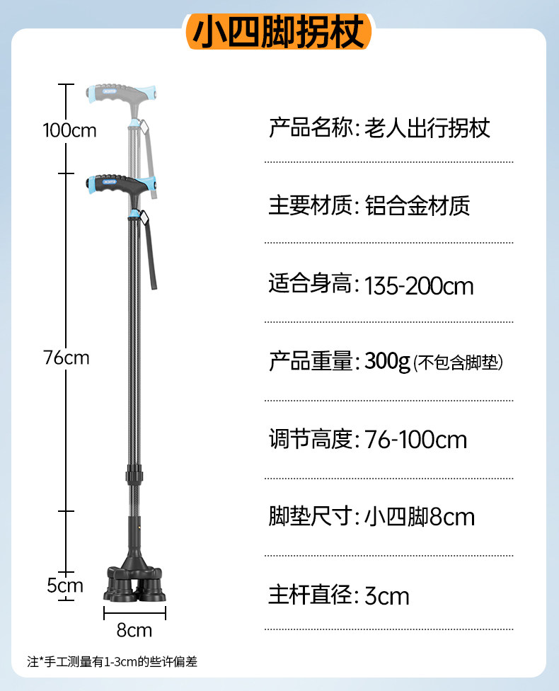 | Color Classification | 01 Ultra-Light [Large Single Leg + Light] Carbon Fiber Transfer + Anti-Slip Handle,02 Ultra-Light [Large Single Leg] Carbon Fiber Transfer Ten Bionic Grip,03 [Small Four Legs] + with Light (Four Legs/One Leg and One Crutch) Carbon Fiber Transfer + Anti-Slip Handle,04 [Small Four Legs] (Four Legs/Single Leg, One Crutch and Two Uses) Carbon Fiber Transfer + Anti-Slip Handle,05 [Medium Four Legs] + with Light (Four Legs/Single Leg, One Crutch and Two Uses) Carbon Fiber Transfer Ten Anti-Slip Grip,06 [Medium Four Legs] (Four Legs/Single Leg and One Crutch Dual Use) Carbon Fiber Transfer Ten Anti-Slip Grip,07 [Medium Four Legs + Auxiliary Standing up]] + with Light (Four Legs/One Leg and One Crutch) Carbon Fiber Transfer Ten Anti-Slip Handle,08 [Stable Big Four Legs] + with Light (Big Four Legs/One Leg and One Crutch for Dual Use)|Carbon Fiber Transfer + Anti-Slip Handle,09 [Stable Big Four Legs] (Big Four Legs/Single Leg Can Be Used for Two Purposes)|Carbon Fiber Transfer + Anti-Slip Handle,10 [Stable Big Four Legs + Auxiliary Standing up] (Big Four Legs/One Leg and One Crutch for Dual Use)|Carbon Fiber Transfer + Anti-Slip Handle,11 [Stable Big Four Legs] One Leg Can Be Used for Three Purposes + with Light (Big Four Legs/Small Four Corners/Single Leg Interchangeable)|Carbon Fiber Transfer,12【Stable Big Four Legs】One Turn and Three Uses (Big Four Legs/Small Four Corners/Single Leg Interchangeable)|Carbon Fiber Transfer,13 [Stable Big Four Legs + Auxiliary Standing up] One Crutch for Three Uses (Big Four Legs/Small Four Corners/Single Leg Interchangeable) | Carbon Fiber Transfer |
