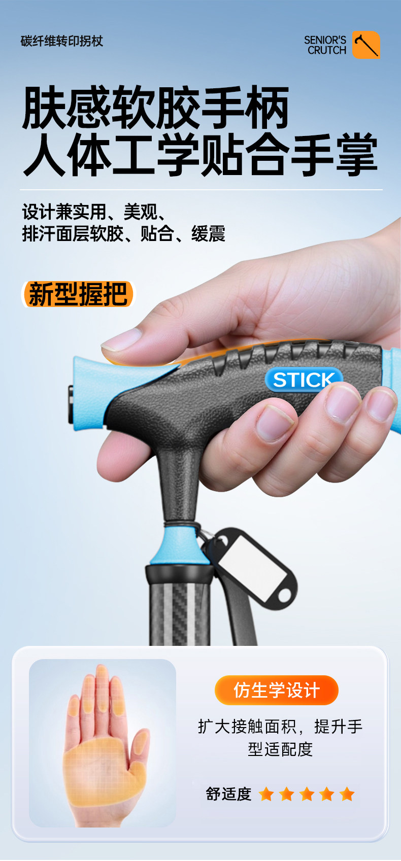 Carbon Fiber Transfer-Printed Walking Stick for the Elderly, Non-Slip Four-Legged Stable Walker, Cane with Handrail for Seniors, Lightweight Walking Stick