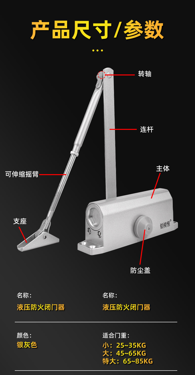 Automatic Buffer Door Closer, Door Rebound Hydraulic Heavy-Duty Fireproof Door, Household Wooden Door Positioning Closer