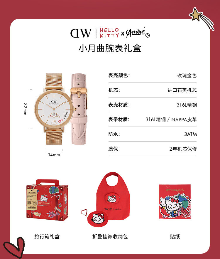 [Dw | Hello Kitty × André Collaboration]Dw Watch Women's New Product Set New Year's Gift