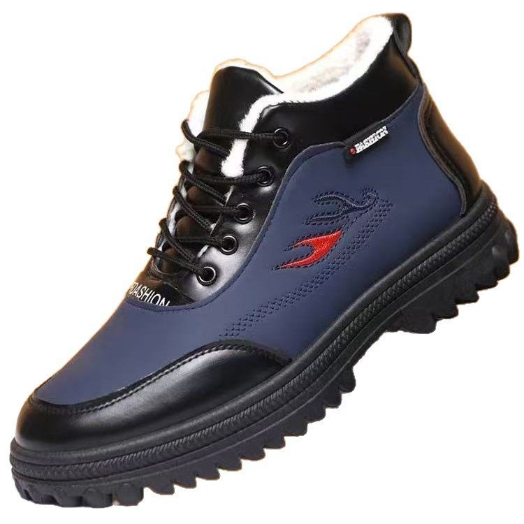 Winter Men's Cotton Shoes with Extra Fleece and Thickened Lining for Cold Protection and Warmth, High-Top Leather Shoes with Soft Soles, Non-Slip Casual Dad Shoes, Snow Boots