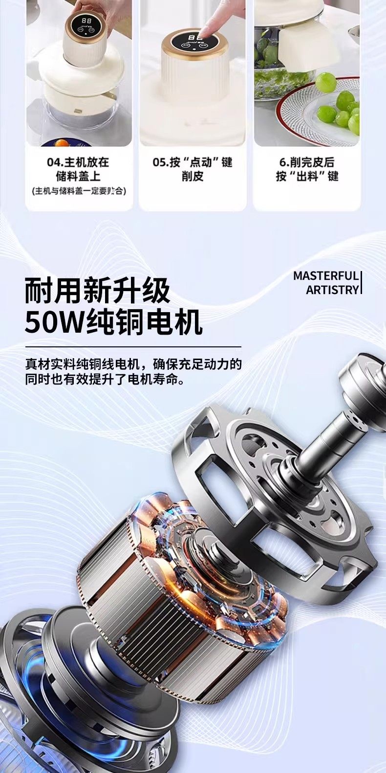 | Color Classification | [Flagship Model] 402 Stainless Steel Cutter + Multi-Purpose + 1300Mah Large-Capacity Battery + Automatic Fruit Delivery,[Standard Model] Manual Fruit Delivery |