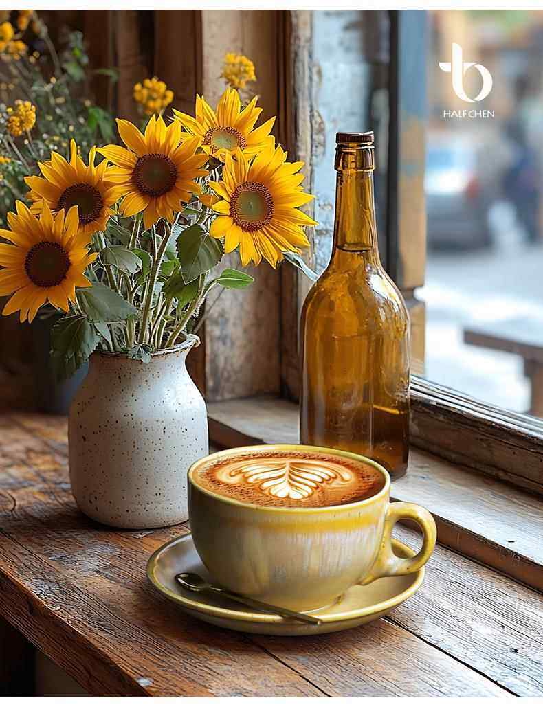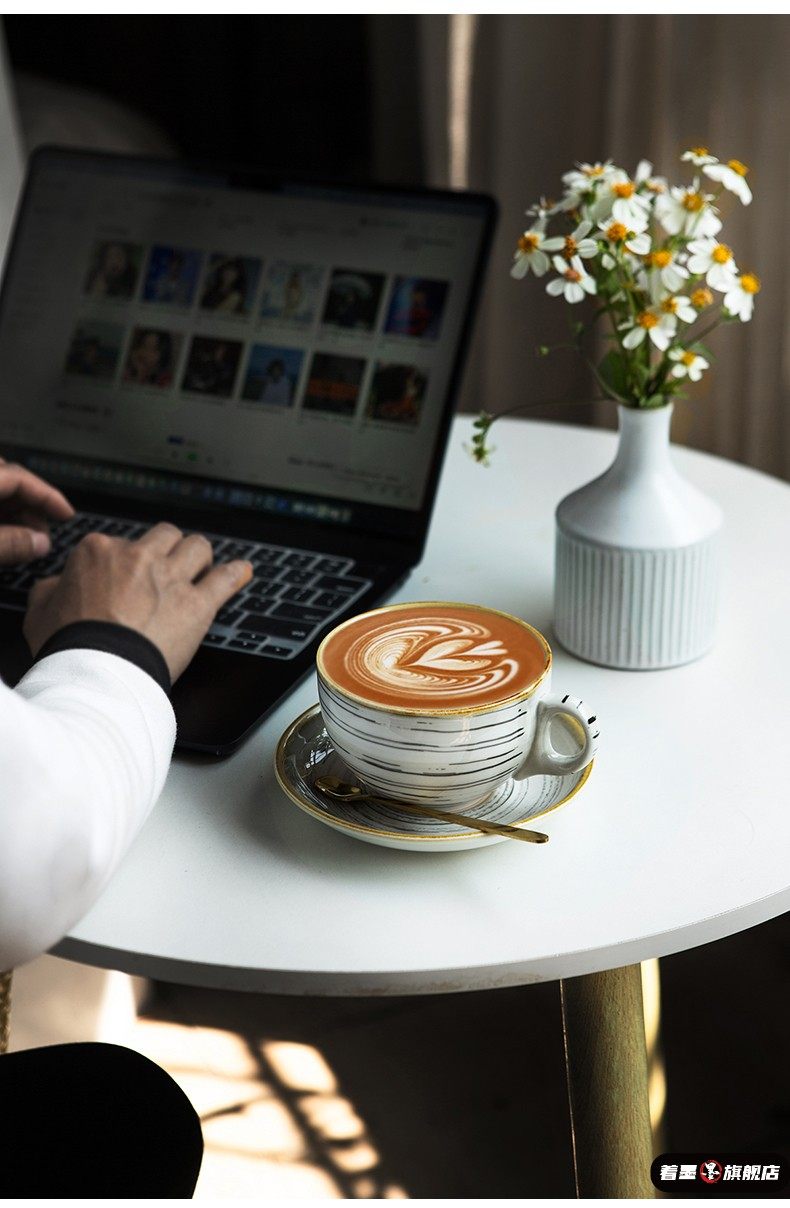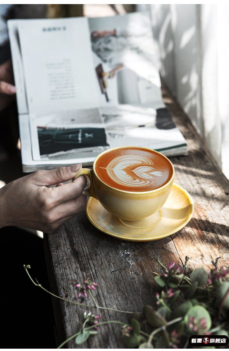 Ceramic Exquisite Coffee Cup, High-End Retro Saucer Set, Creative Latte Art Cup, 320ml Coffee Cup