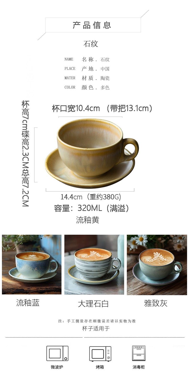 | Color Classification | Flowing Glaze Blue 320ml Coffee Cup and Saucer Set,Marble White 320ml Coffee Cup and Saucer Set,Flowing Glaze Yellow 320ml Coffee Cup and Saucer Set,Elegant Gray 320ml Coffee Cup and Saucer Set |