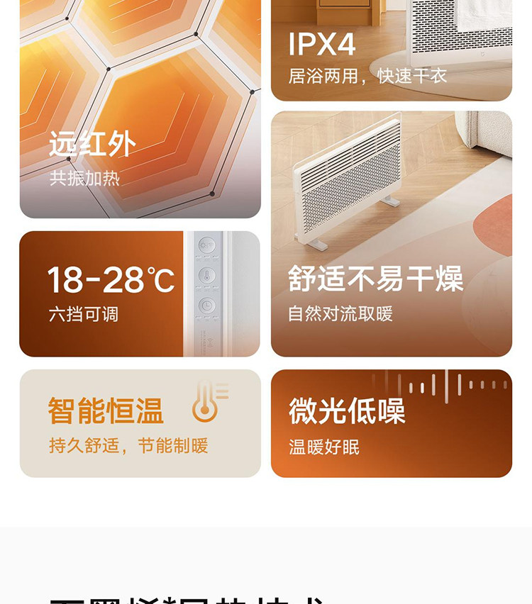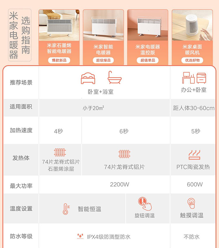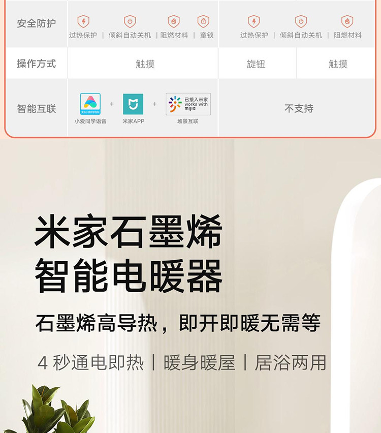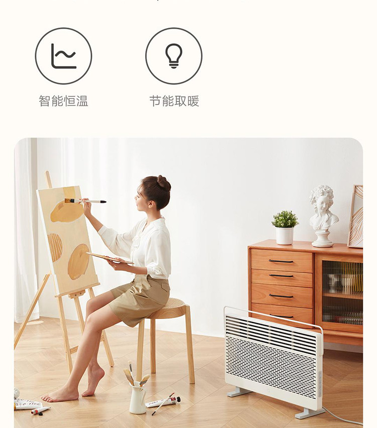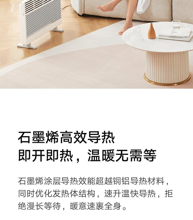 Mijia Graphene Smart Electric Heater, Household Energy-Saving Heater, Dual-Purpose for Bedroom and Bathroom, Constant Temperature, Fast Heating Warm Air