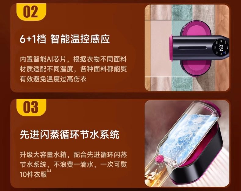 | Color Classification | â Store Manager's Pick: [Deep Purple + Foldable Ironing Board] Powerful Pulse Steamâ Remove Wrinkles in 1 Secondâ 7 Levels of Intelligent Temperature Controlâ Does Not Damage Clothes,â ăBeige + Foldable Ironing BoardăPowerful Pulse Steamâ Remove Wrinkles in 1 Secondâ 7 Levels of Intelligent Temperature Controlâ Does Not Damage Clothes,â¤ď¸[Tmall Next Day Delivery] 60-Day TrialâĄFree Shipping InsuranceâĄFast Shipping,â¤ď¸Add to Favorites + Add to Cart = Free Folding Ironing Boardâ 100 Days Free Trialâ Insulated Base and Measuring Cupâ 365 Days Replacement,â¤ď¸[Ironable on All Kinds of Fabrics] Silkâ Mulberry Silkâ Cotton and Linenâ Suitâ Shirtâ Coatâ Sweaters and Other Items Can Be Ironed. |