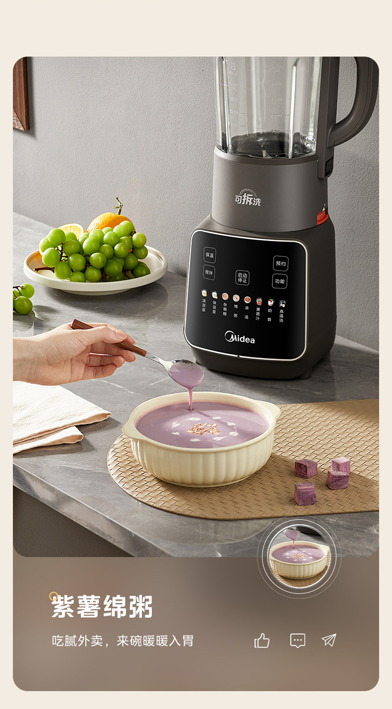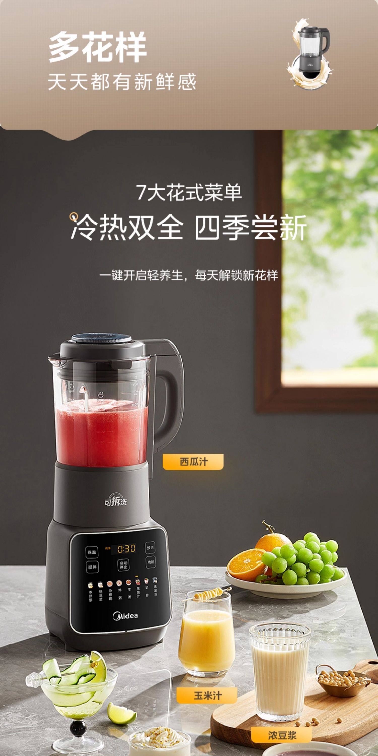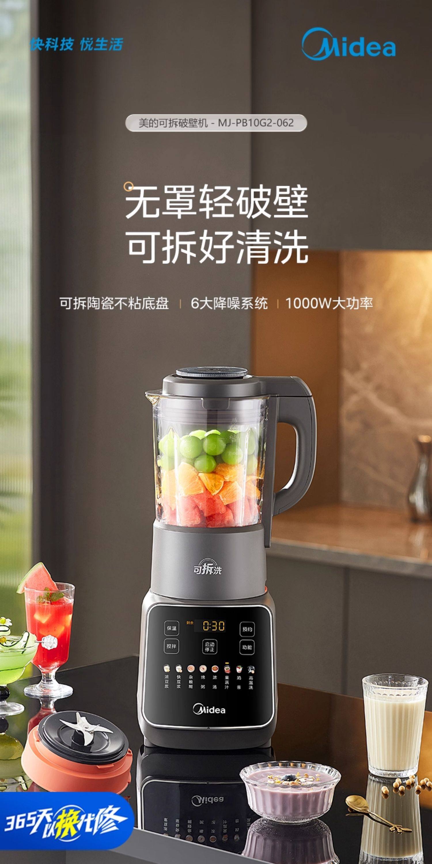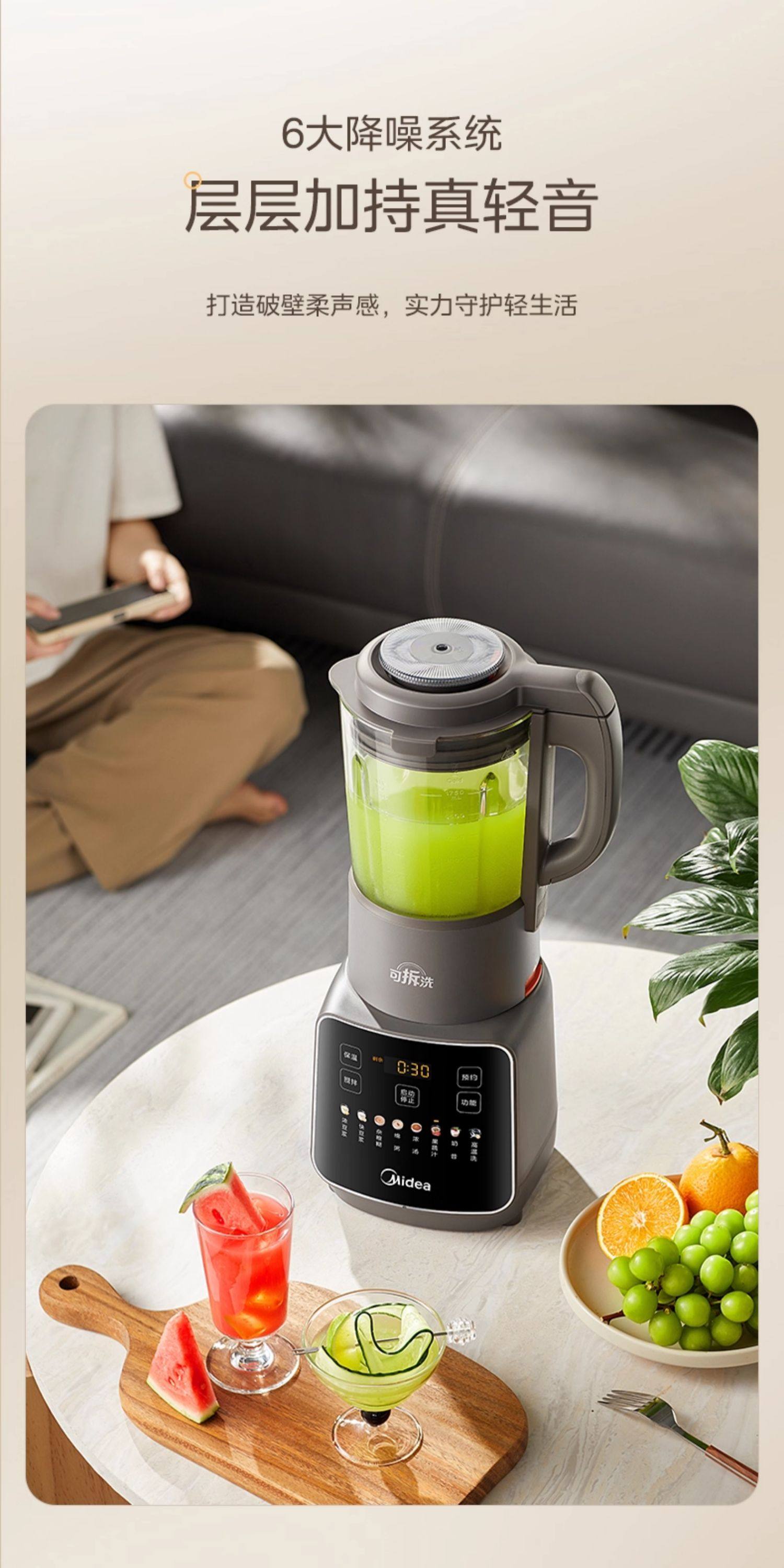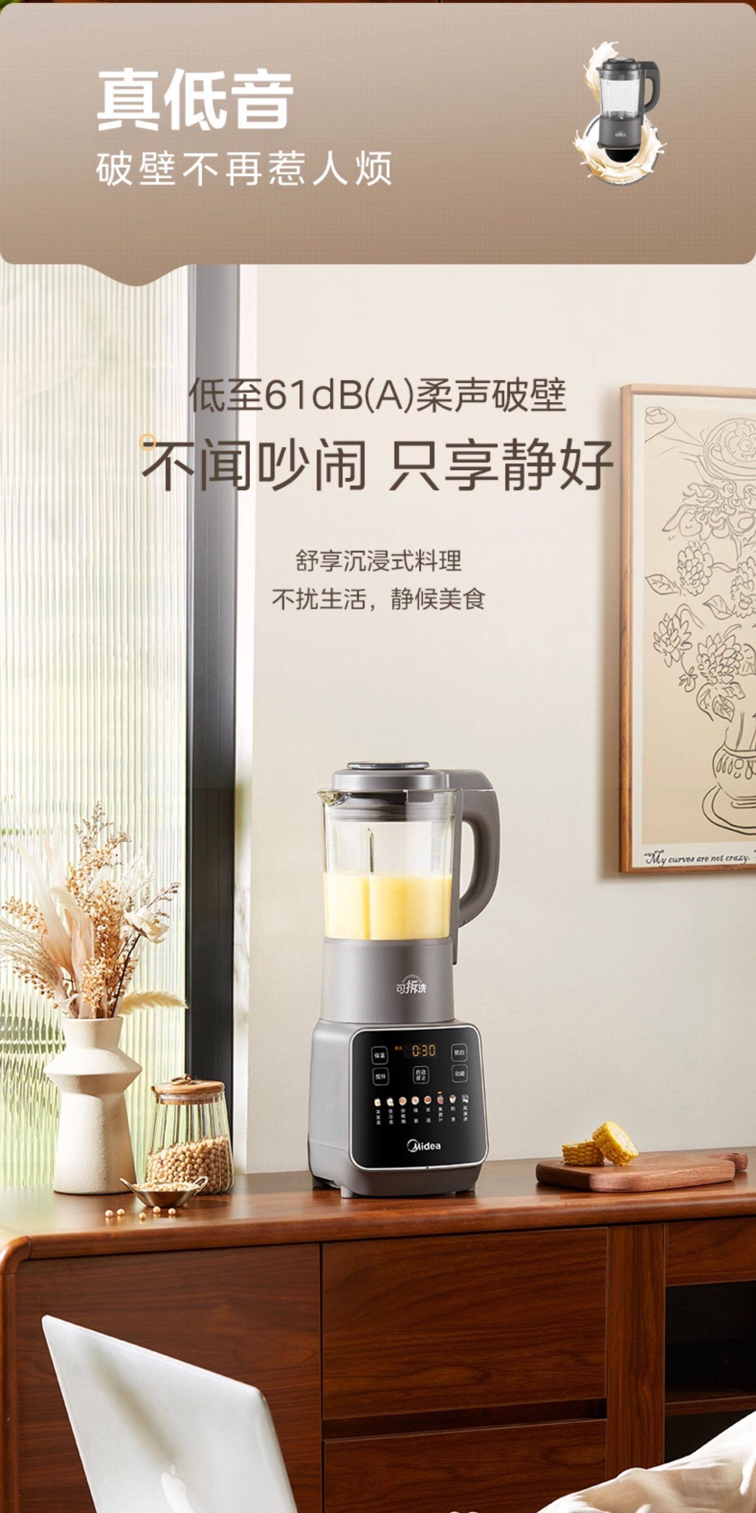 Midea Blender for Home Use, Fully Automatic, Detachable and Washable, for Making Soy Milk, Juicing, Quiet Operation, No-Filter Cooking Machine, Rice Paste and Baby Food Maker