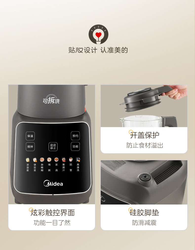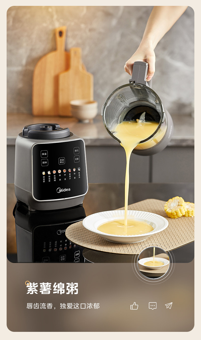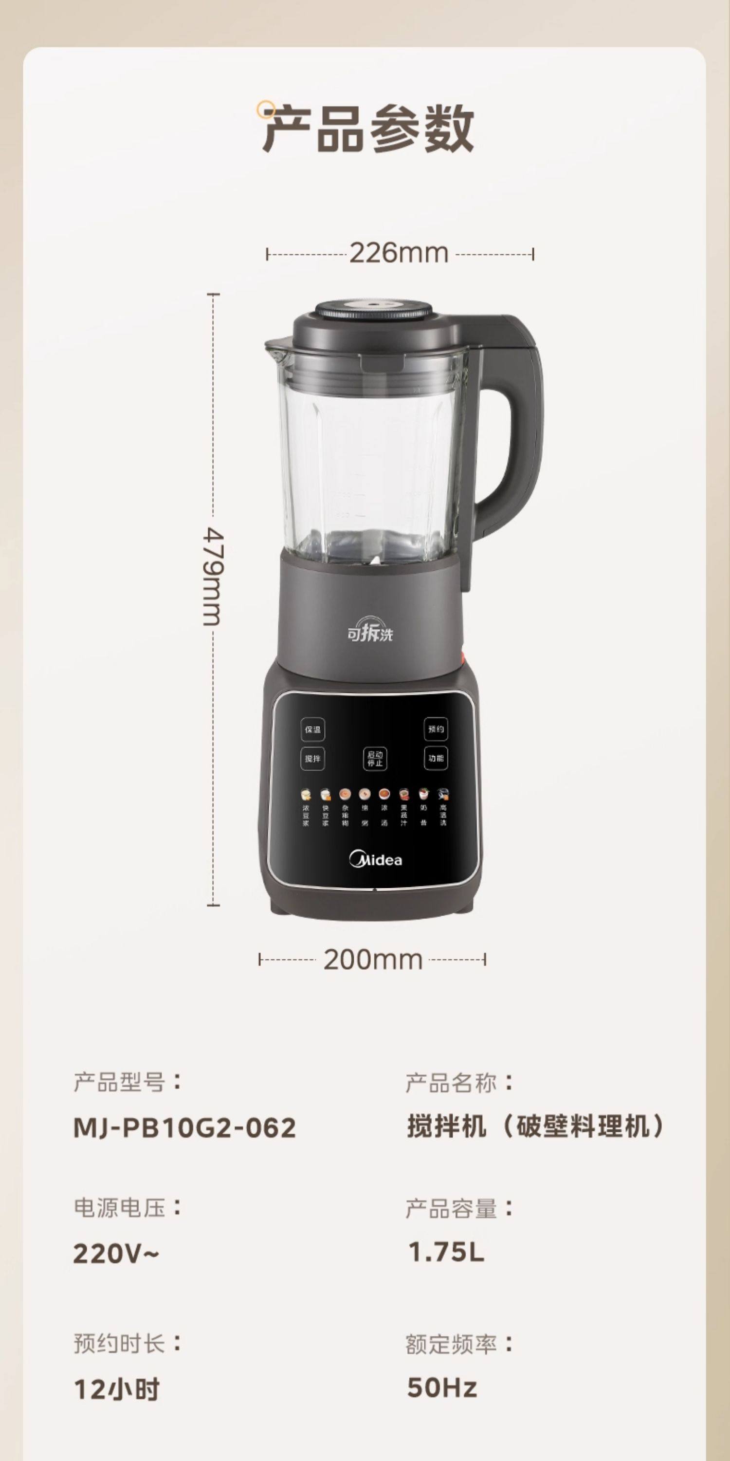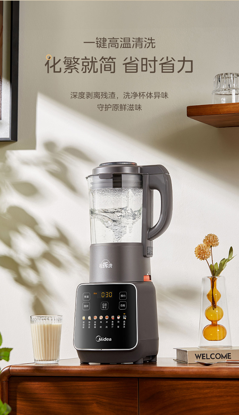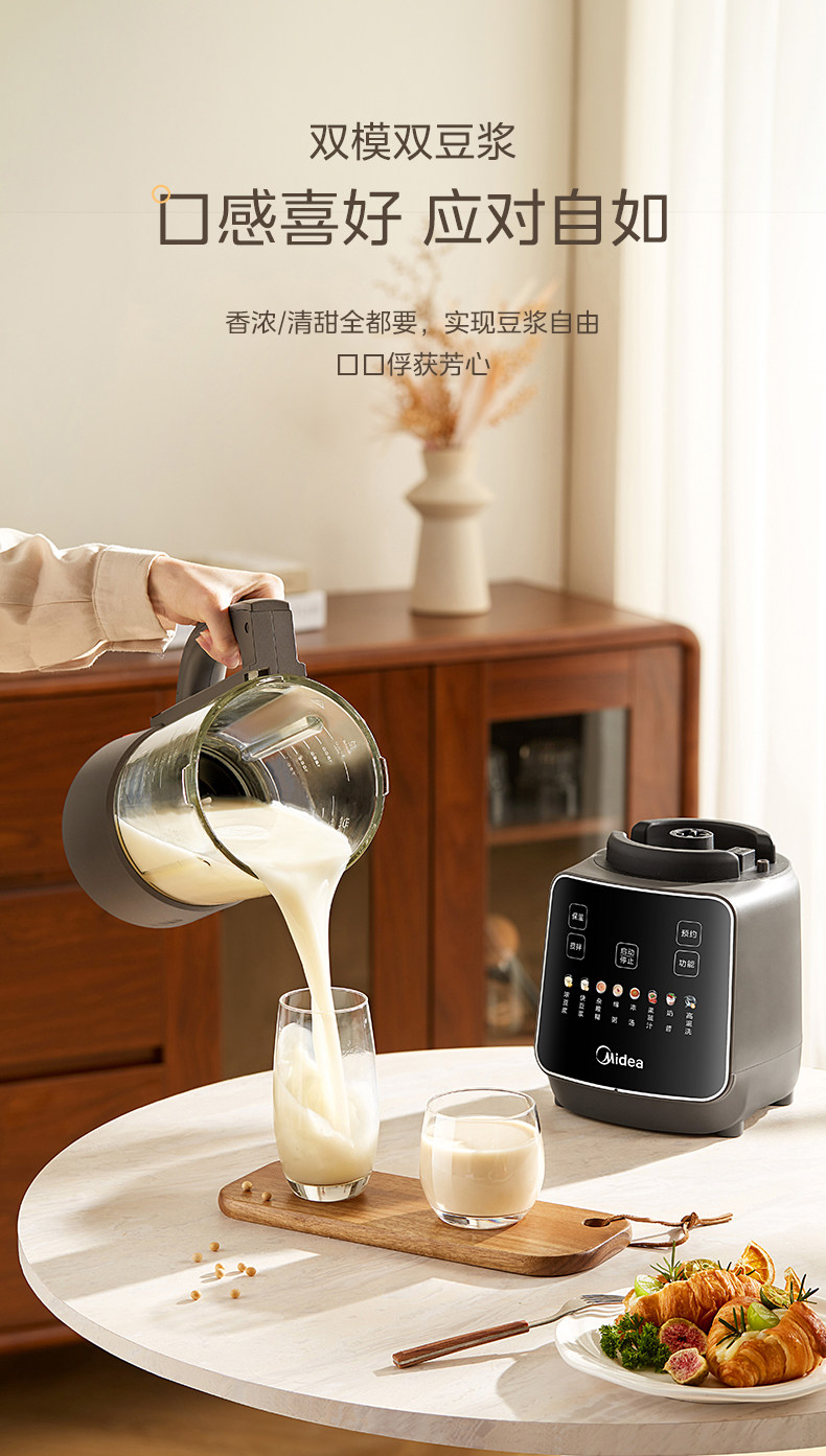Midea Blender for Home Use, Fully Automatic, Detachable and Washable, for Making Soy Milk, Juicing, Quiet Operation, No-Filter Cooking Machine, Rice Paste and Baby Food Maker