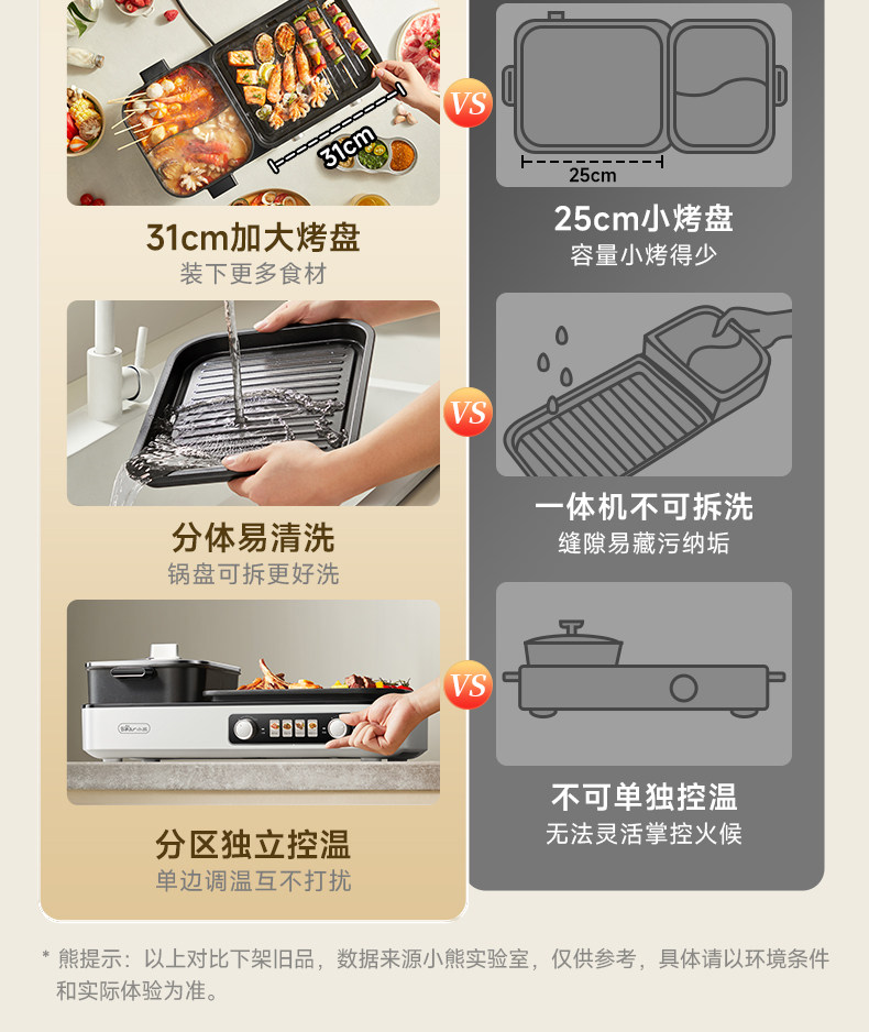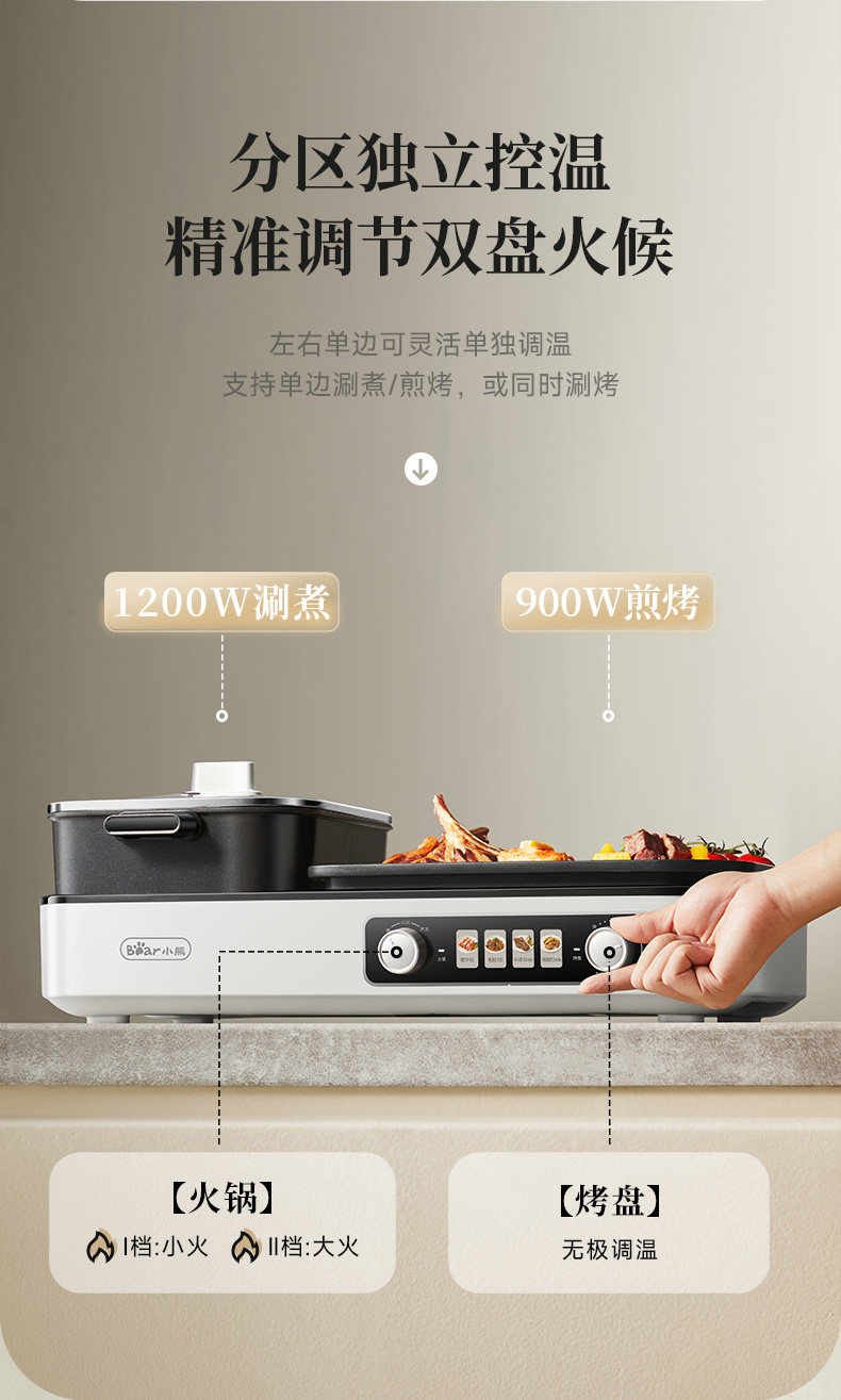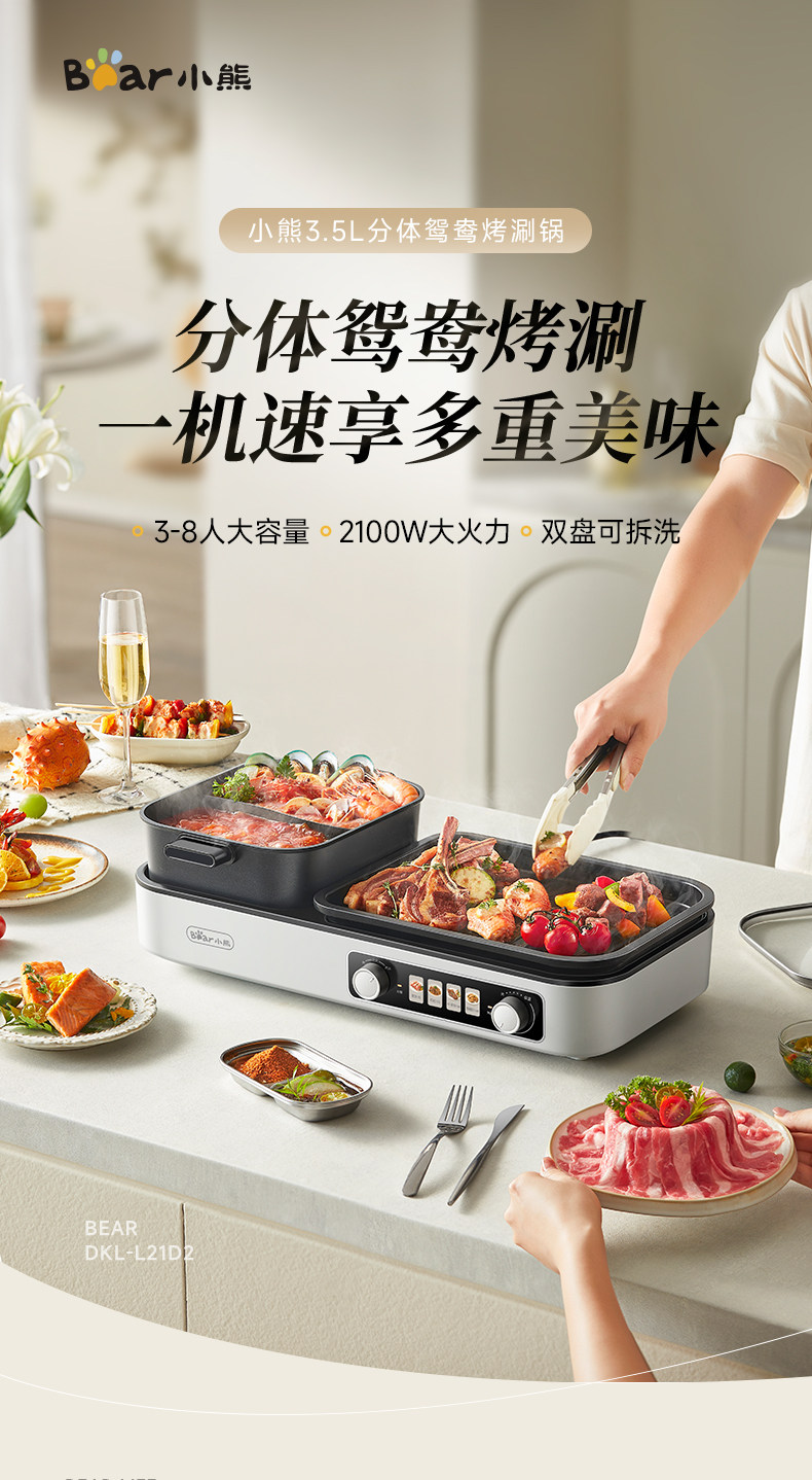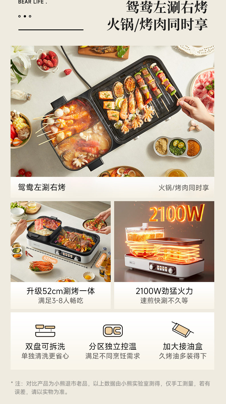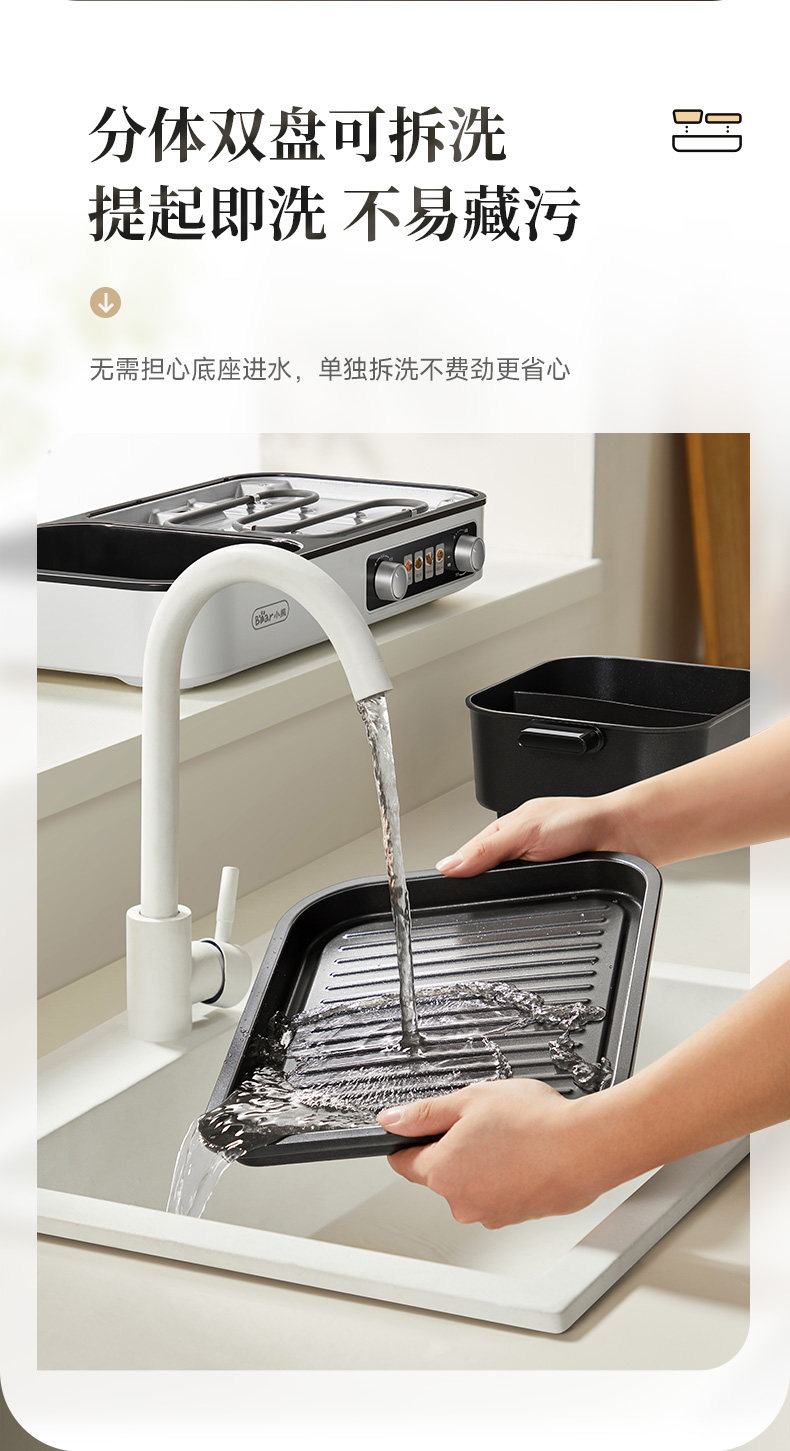 Bear Multifunctional Cooking Pot for Home Use, Detachable Electric Hot Pot, Shabu-Shabu and Grill Combo, Electric Grill, Stackable Pot, Official Flagship Product