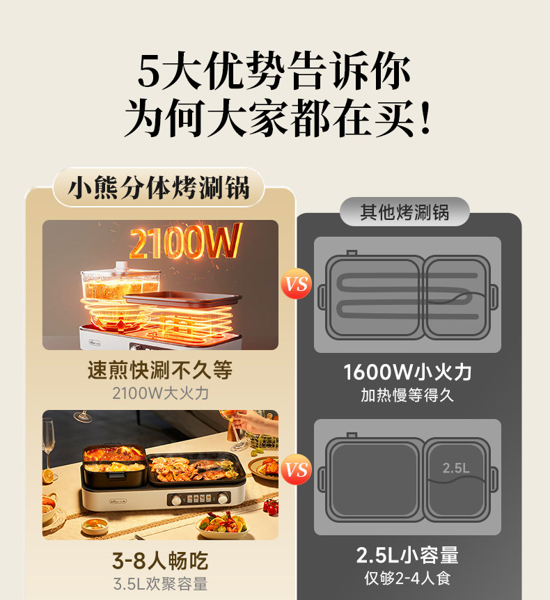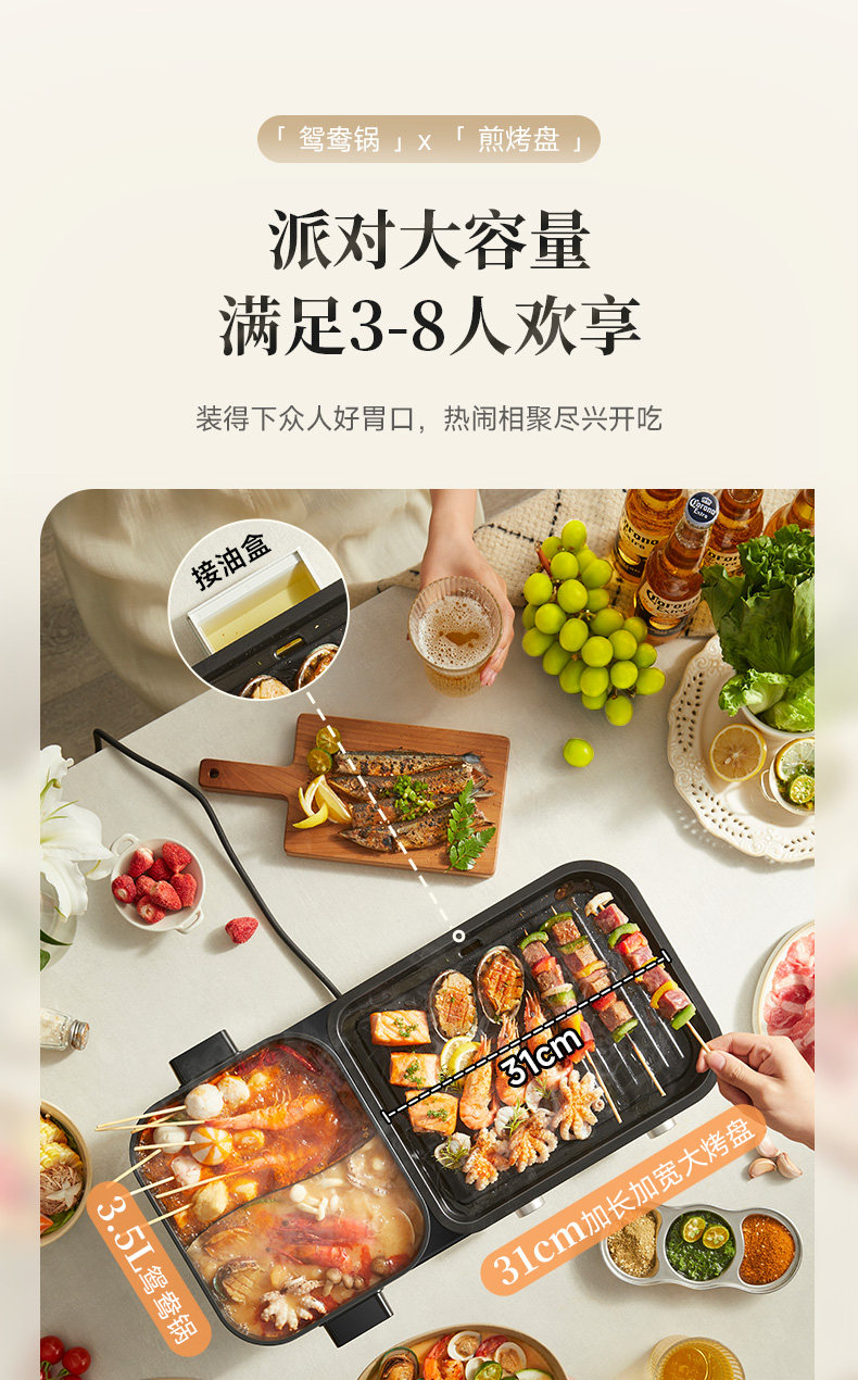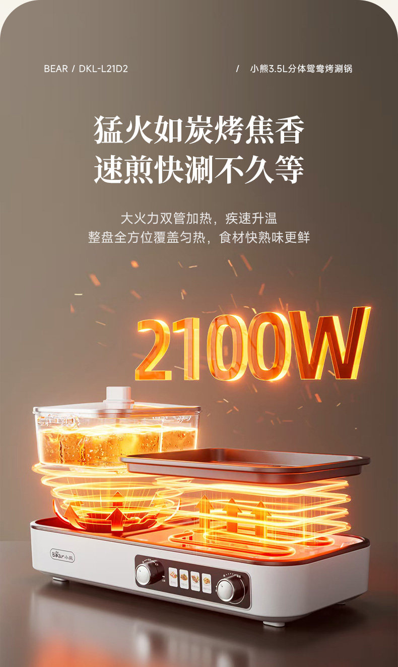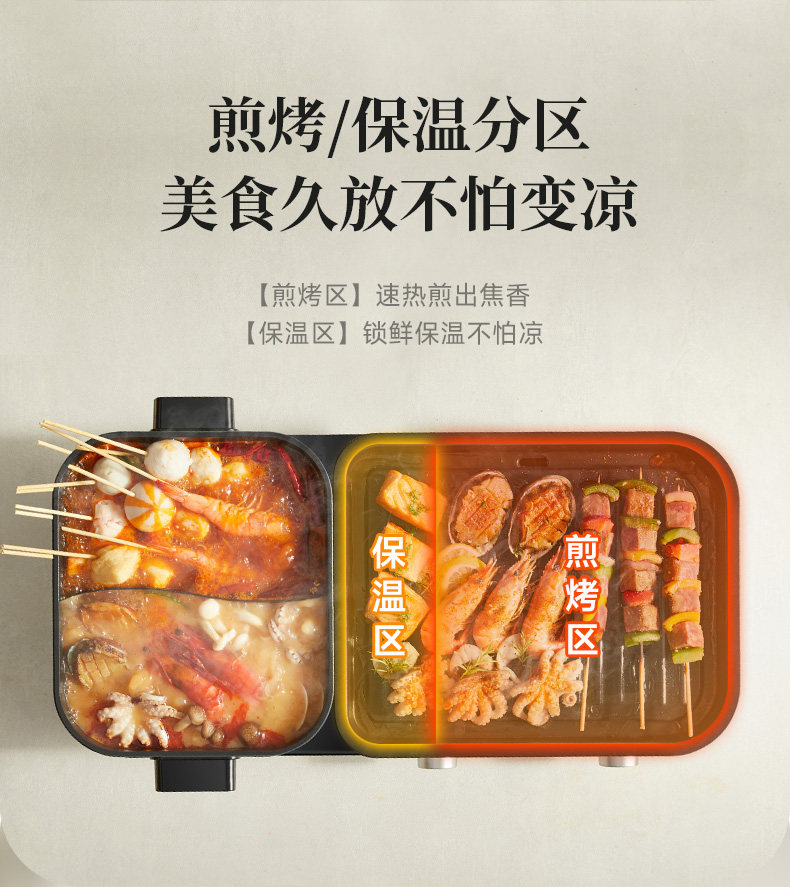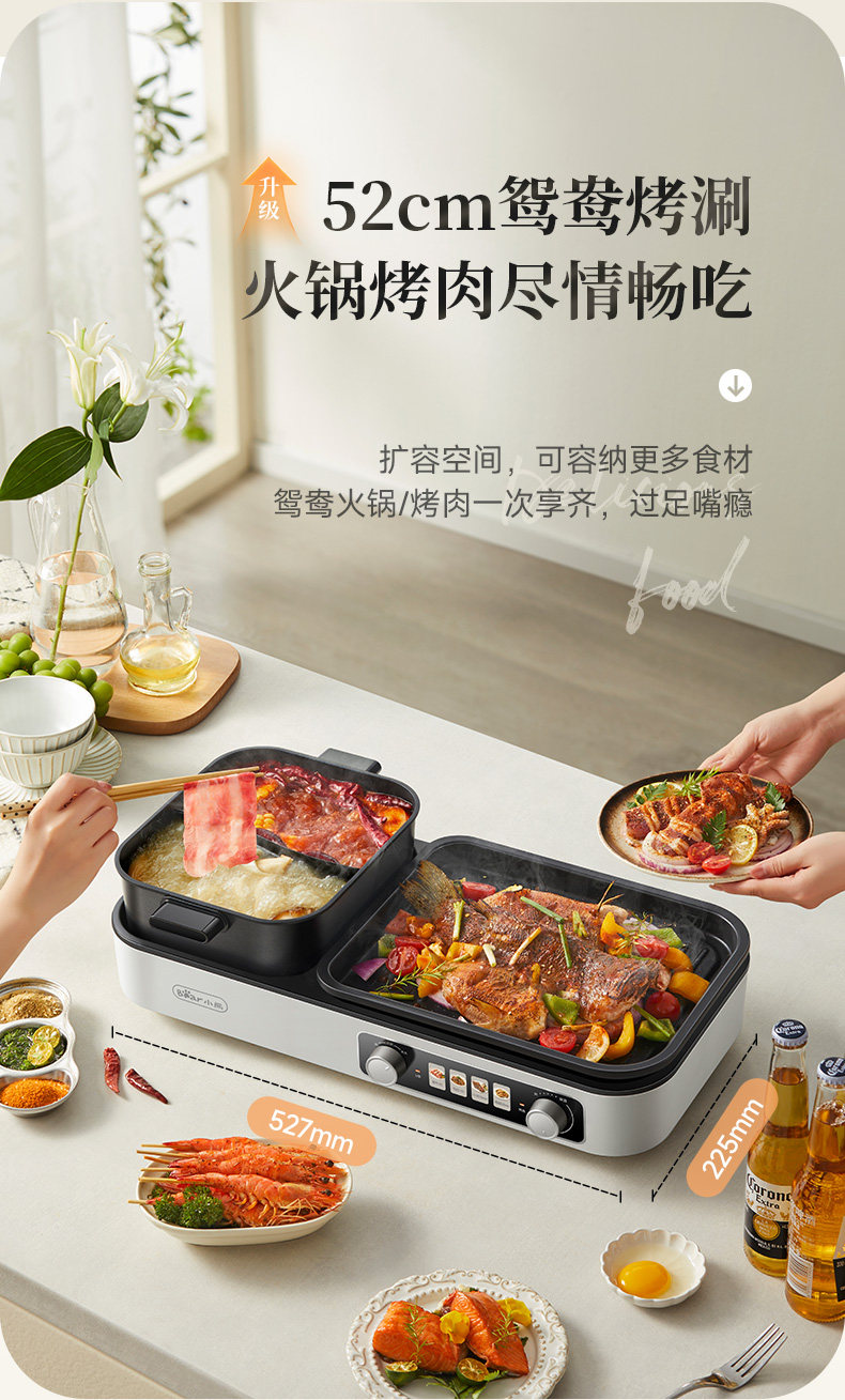 Bear Multifunctional Cooking Pot for Home Use, Detachable Electric Hot Pot, Shabu-Shabu and Grill Combo, Electric Grill, Stackable Pot, Official Flagship Product