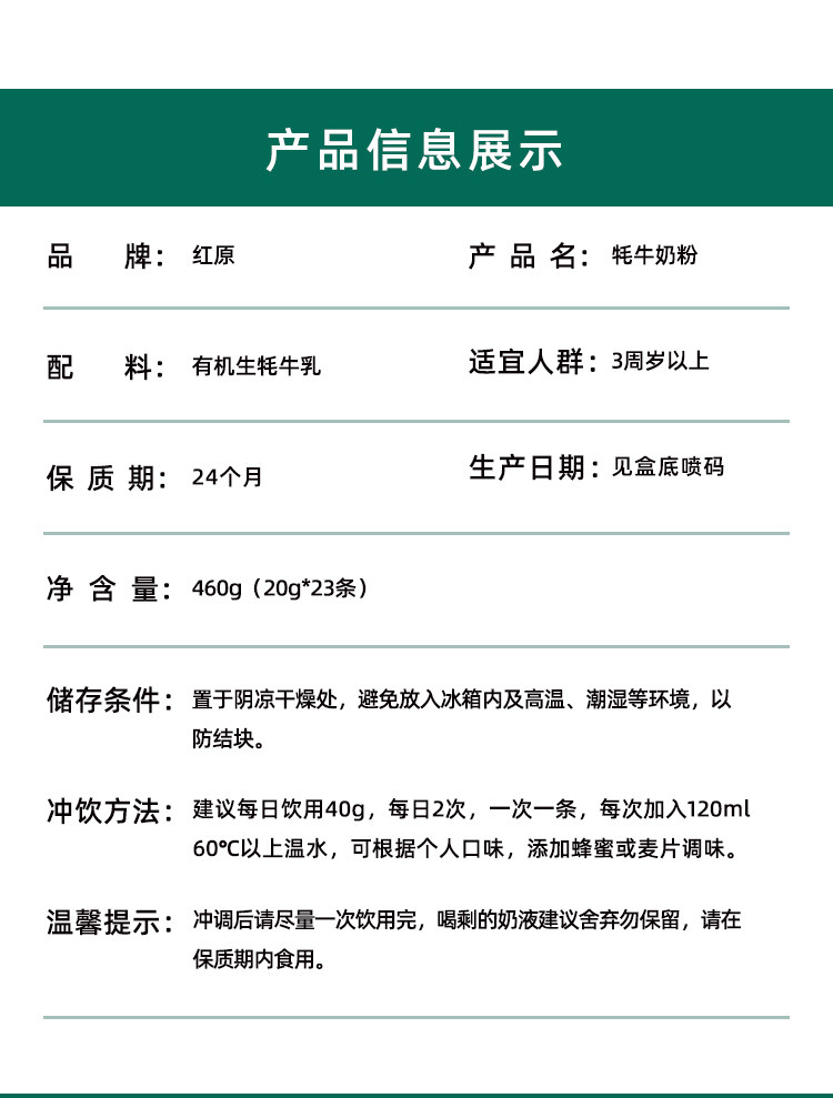 | Product Name | Hongyuan Yak Milk Powder 460g Can |