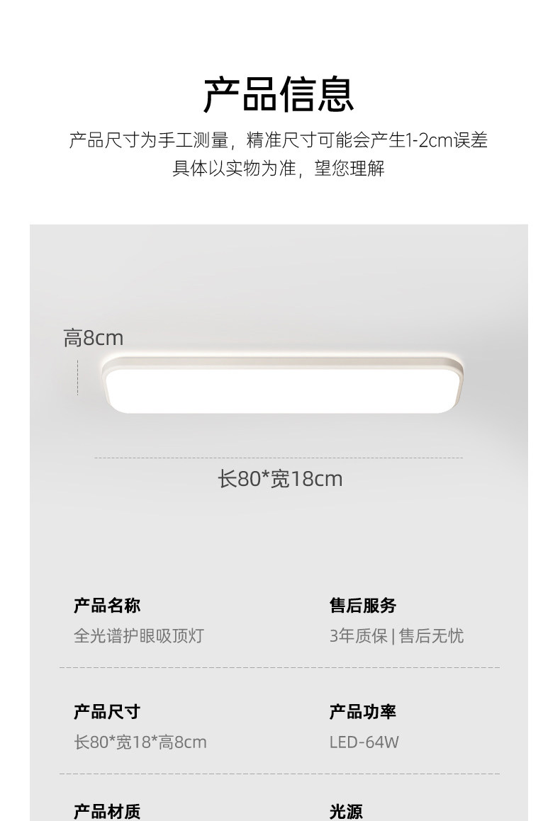 | Color Classification | [Ordinary Regular Model] Yabai 108W Rectangular Living Room Lamp-White Light,[Full Spectrum Eye Protection] Off-White Rectangle-80Cm│64 Watts│Three Tone Lighting,[Full Spectrum Eye Protection] Off-White Rectangle-80Cm│64 Watts│Tmall Elf |