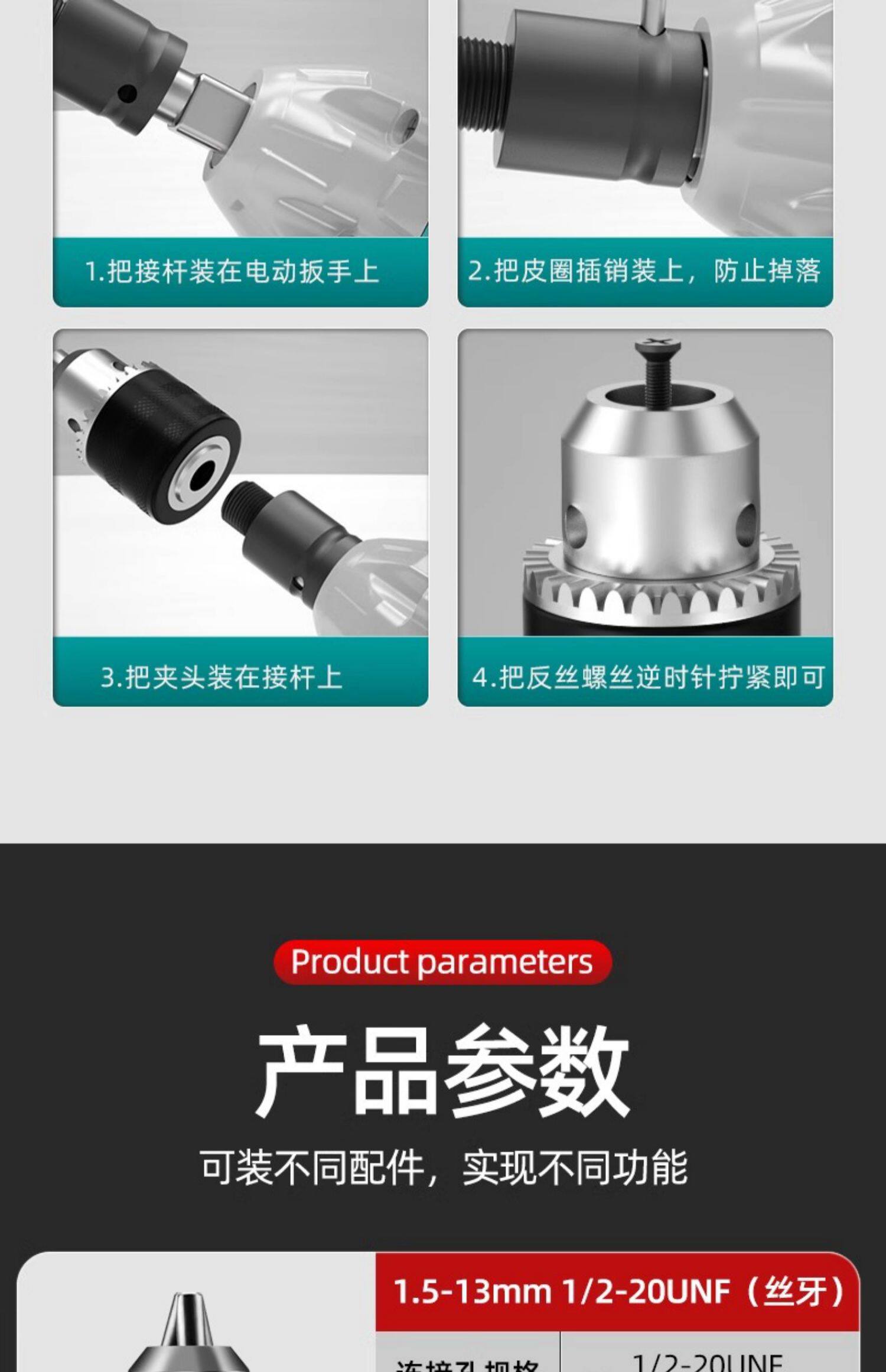 | Color Classification | Self-Locking Drill Chuck [1.5Mm-10Mm] + 3/8 Anti-Thread Adapter.,Self-Locking Drill Chuck [2Mm-13Mm] + 1/2 Anti-Thread Adapter.,Metal Drill Chuck [1.5Mm-10Mm] + 3/8 Anti-Thread Adapter,Metal Drill Chuck [1.5Mm-13Mm] + 1/2 Anti-Thread Adapter.,Ratchet Drill Chuck [0.8Mm-10Mm] + 3/8 Anti-Thread Adapter.,Ratchet Drill Chuck [1.5Mm-13Mm] + 1/2 Anti-Thread Adapter,[1 Piece] Electric Wrench Telescopic Conversion Head] Ordinary Model.,【2-Pack】Electric Wrench Telescopic Conversion Head - Value Deal,[Set of 3] Electric Wrench Telescopic Conversion Heads - Clearance Sale at Rock-Bottom Prices!,[5 Pieces] Electric Wrench Telescopic Conversion Head] Super Discount Price,Electric Wrench Universal Adapter |