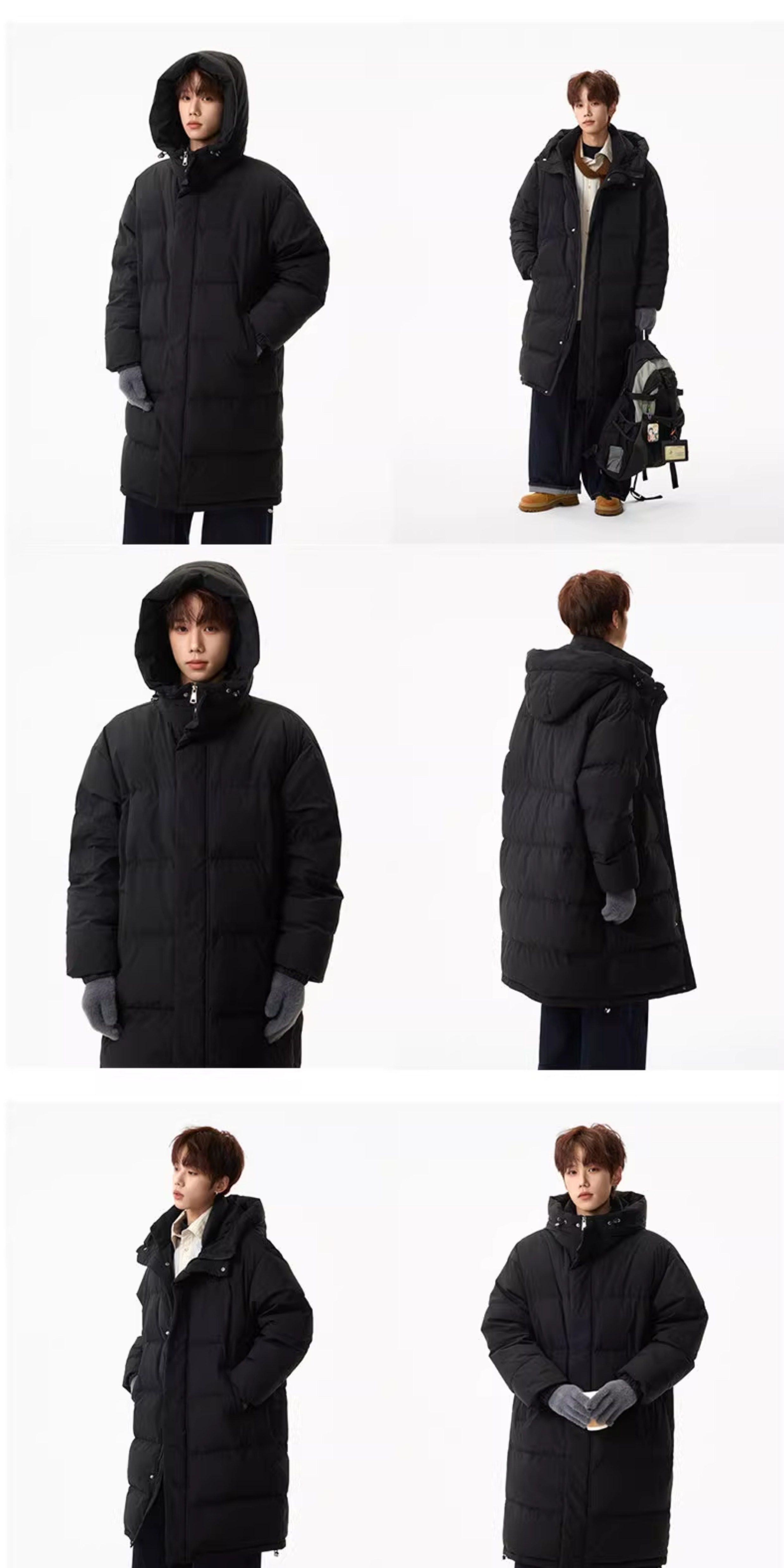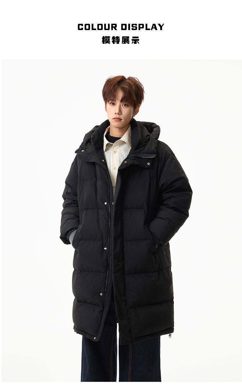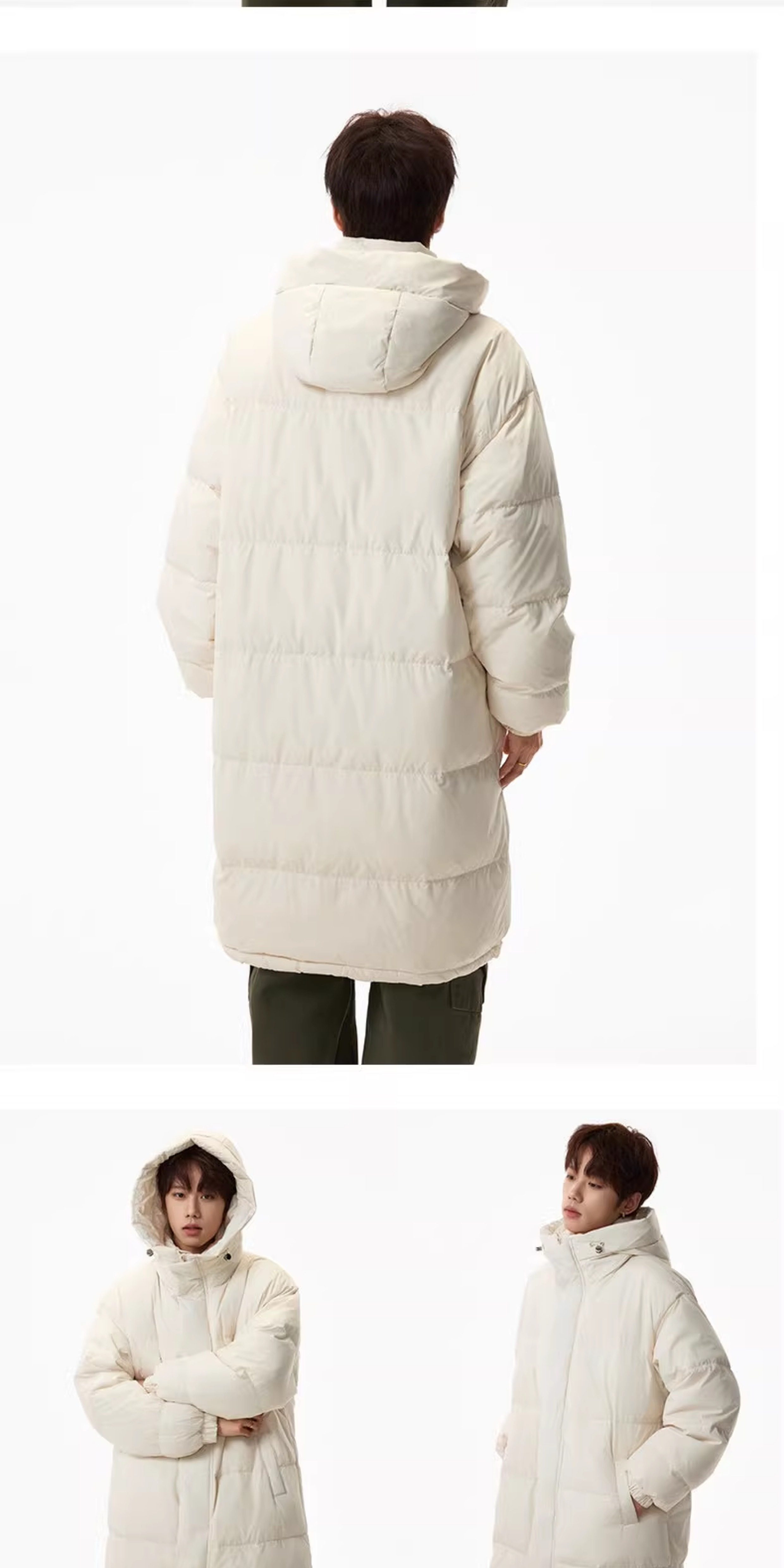 Mid-Length 90% White Duck down Hooded down Jacket for Men and Women, 2025 Winter, Youth Large Size, Cold-Proof and Warm Coat, Trendy