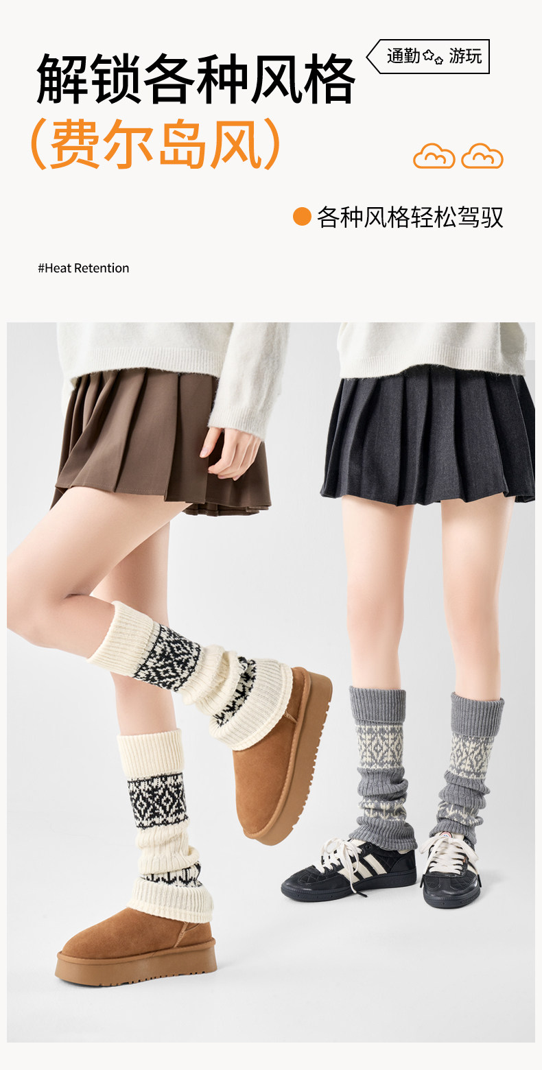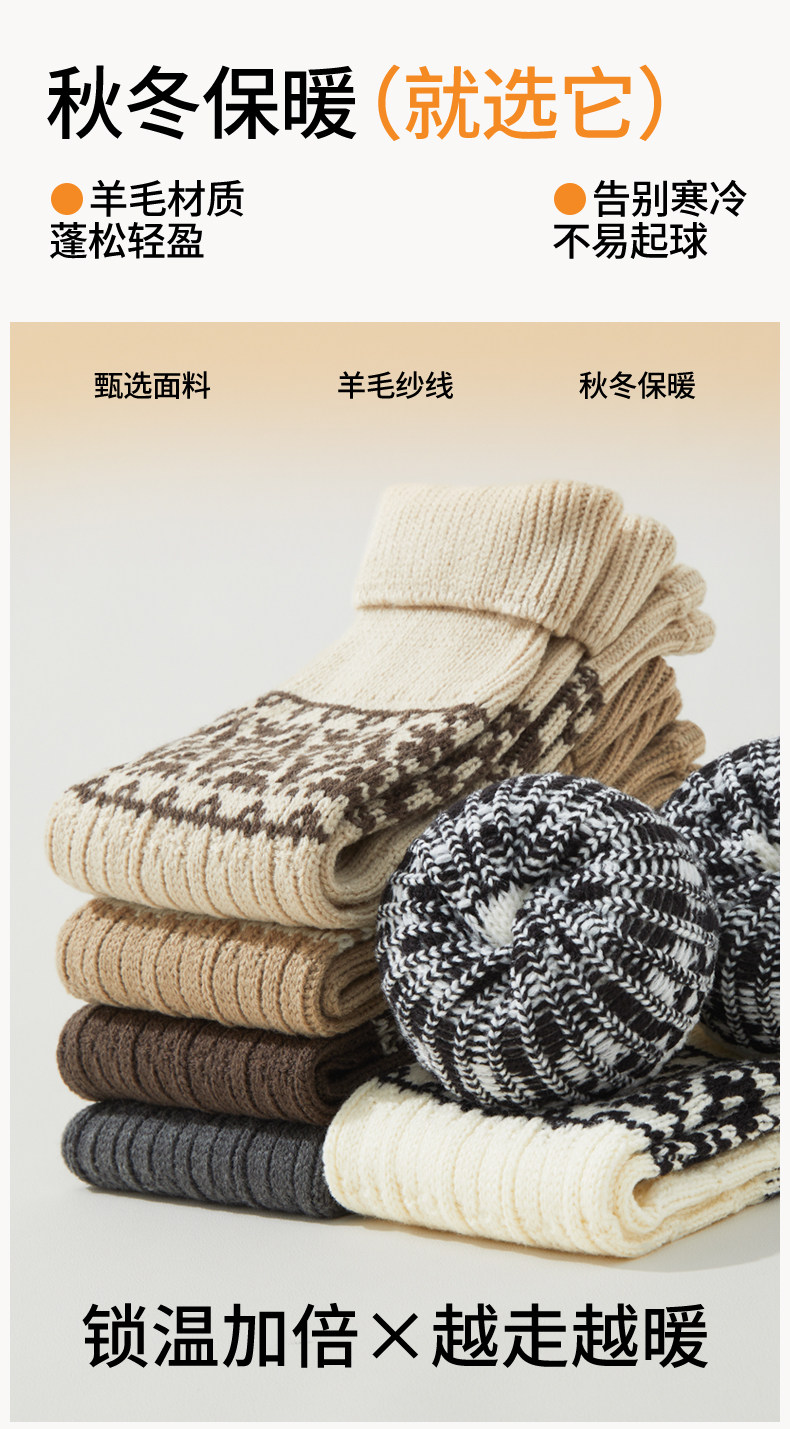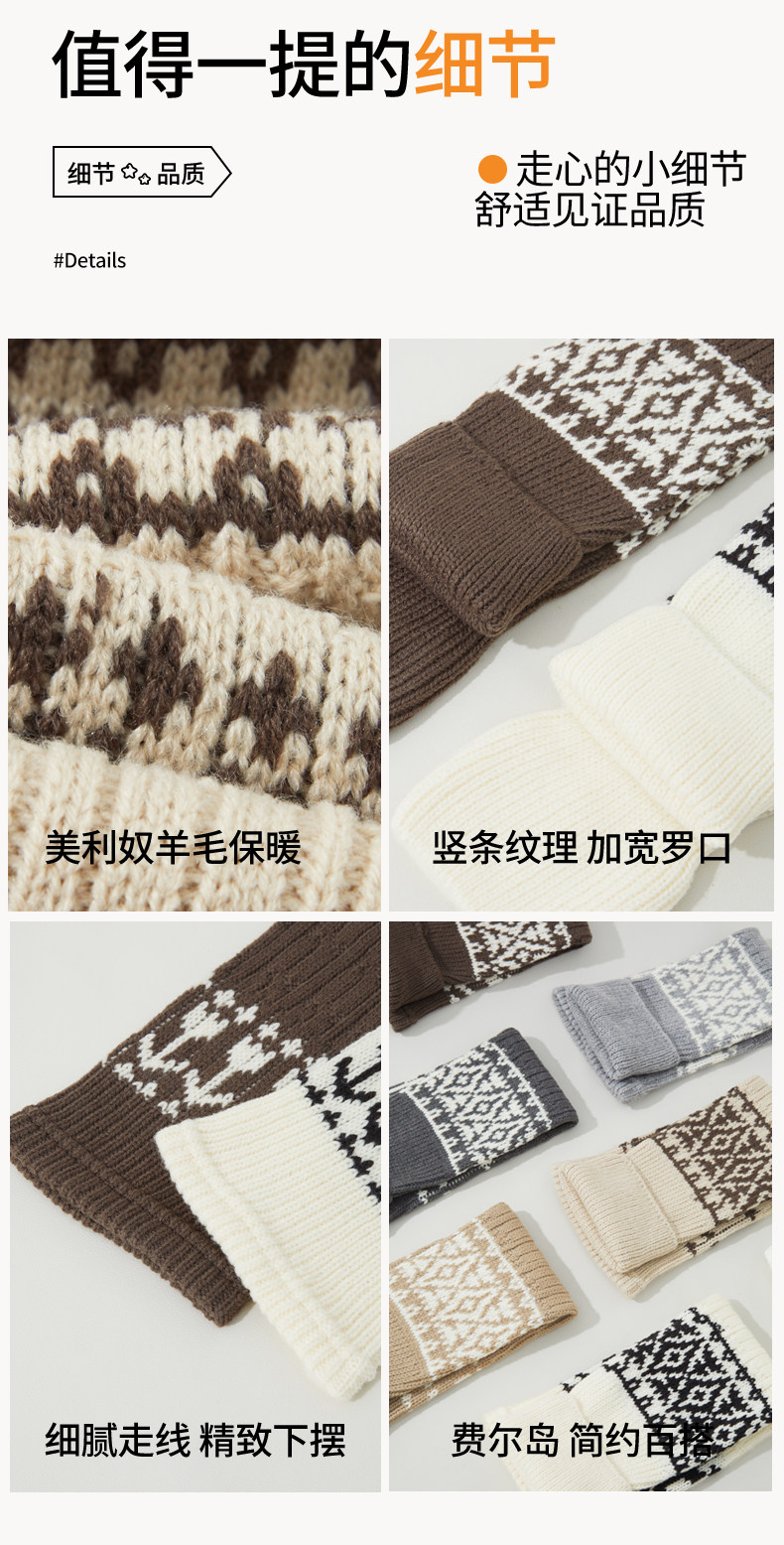 White Wool Socks for Women, Autumn and Winter Mid-Calf Socks, Slimming Fair Isle Socks, Thickened and Warm Leg Warmers