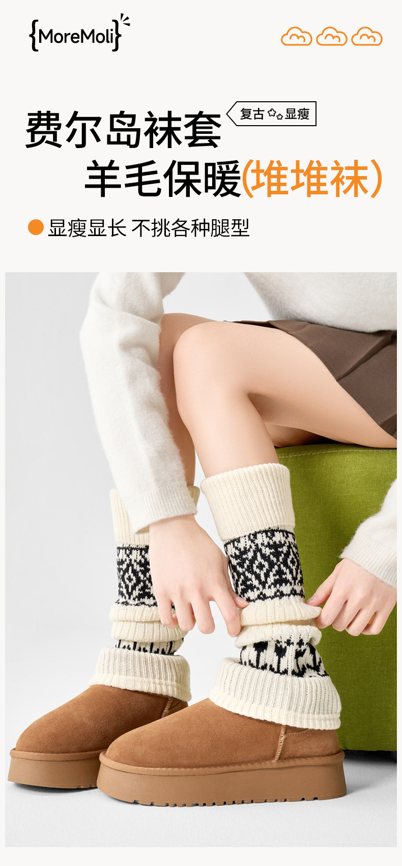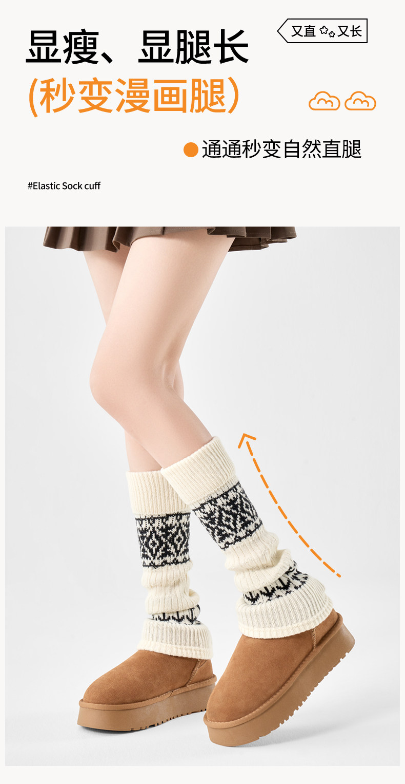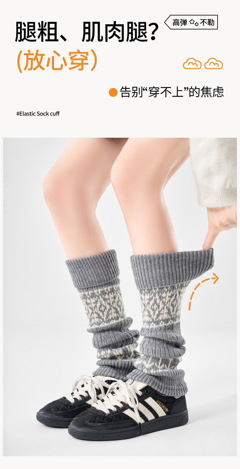 White Wool Socks for Women, Autumn and Winter Mid-Calf Socks, Slimming Fair Isle Socks, Thickened and Warm Leg Warmers