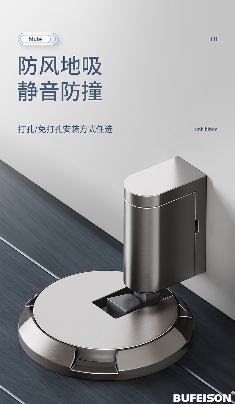 Door Stopper Windproof Floor-Mounted No-Drill Anti-Collision High Door Stopper New Invisible Bathroom Door Stop Silent Door Bumper Japanese Style