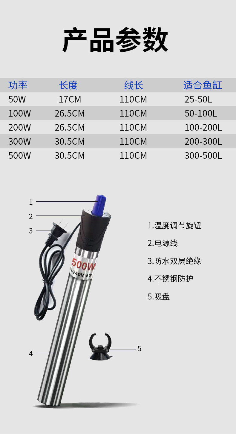 Heating Rod for Fish Tank, Automatic Constant Temperature Heating Rod, Heater, Turtle Thermometer, Small Stainless Steel Explosion-Proof Heater