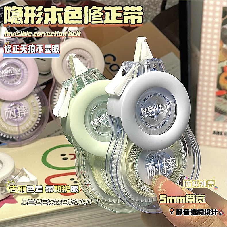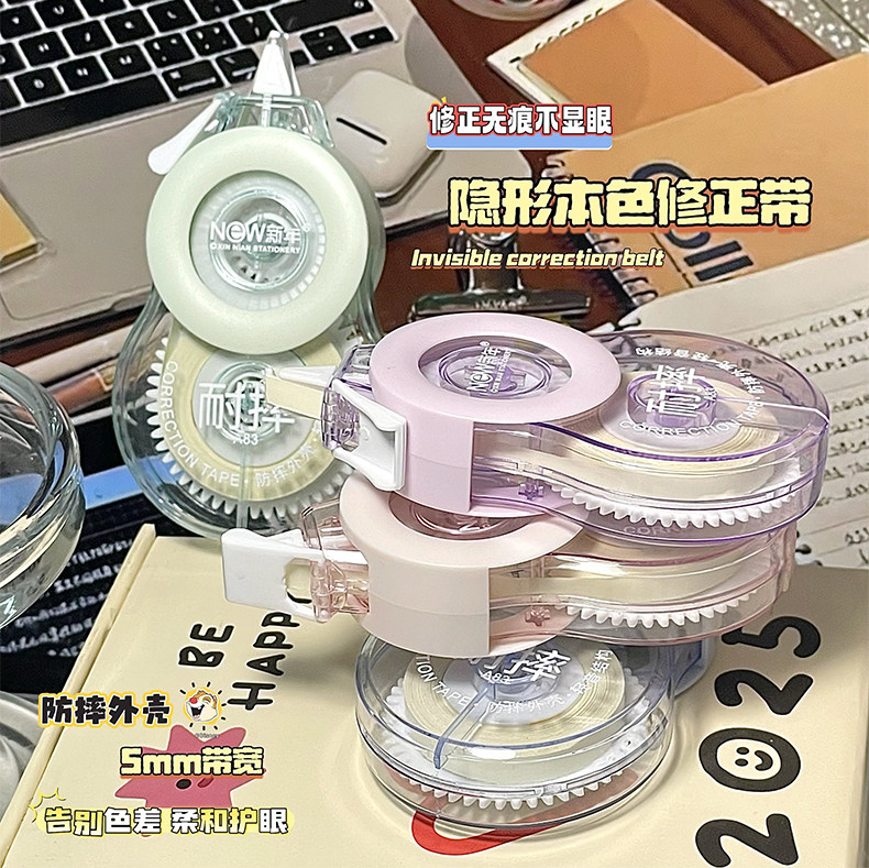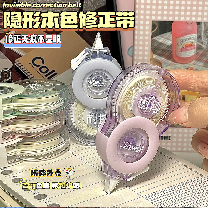 Invisible Correction Tape, Beige, for Students, Suitable for Elementary and Middle School Students, No-Mark, Ins-Style Invisible Correction Tape, Silent Correction Tape, Invisible Erasing Correction Fluid, Beige, Smooth Correction, Special for Correction