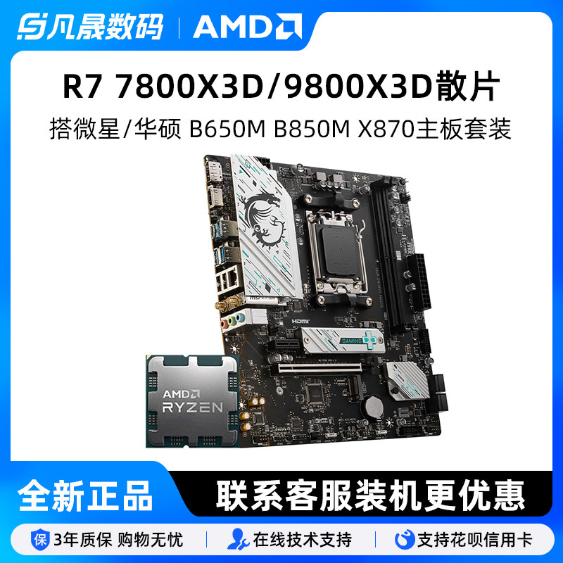 Amd Ryzen R7 7800X3D/9800X3D Msi B650M Asus B850M Heavy Gunner Cpu Motherboard Set