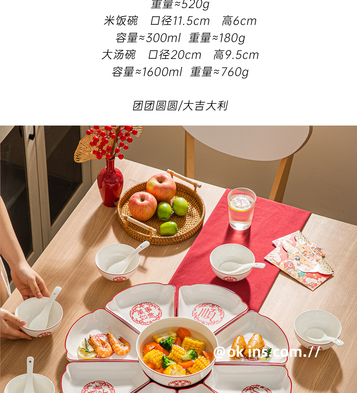 | Color Classification | [Reunion Platter] 8 Plates,[Reunion Platter] 8 Plates and 1 Soup Bowl,【Reunion Platter】8 Plates + 1 Casserole,[Reunion Platter] 8 Plates, 8 Bowls, 8 Spoons, 1 Soup Bowl,【Family Reunion Platter】8 Plates, 8 Bowls, 8 Spoons, 1 Casserole Dish |