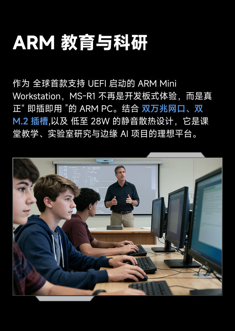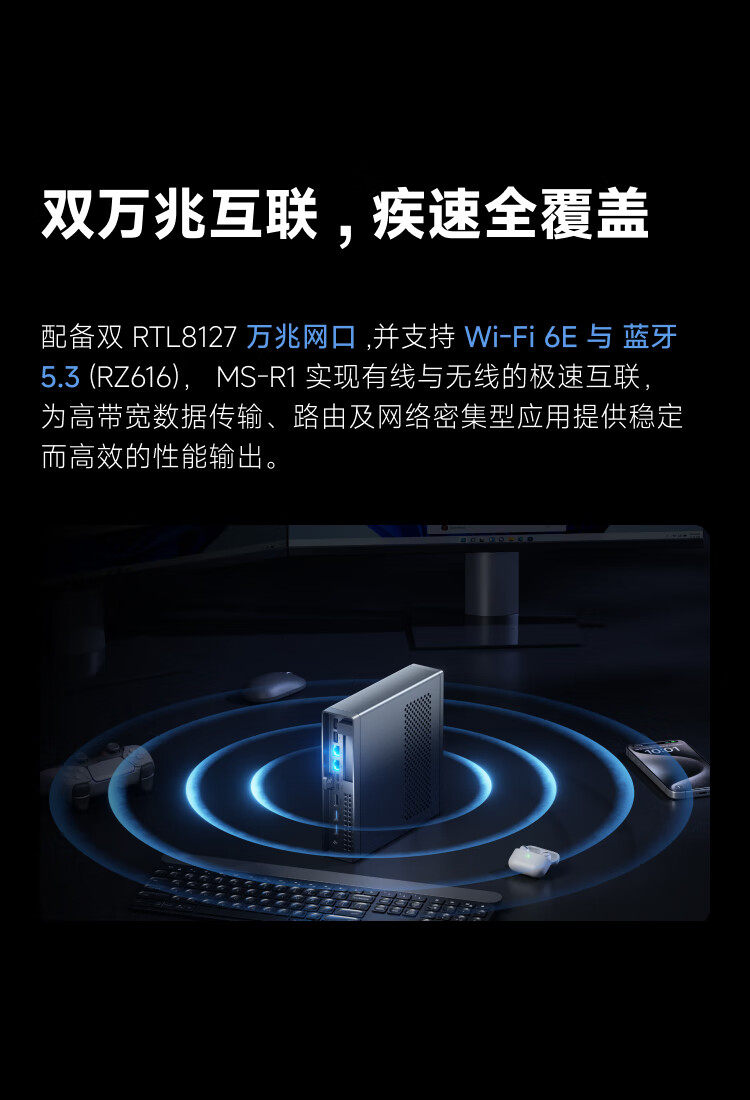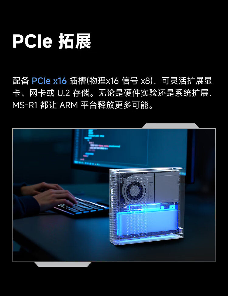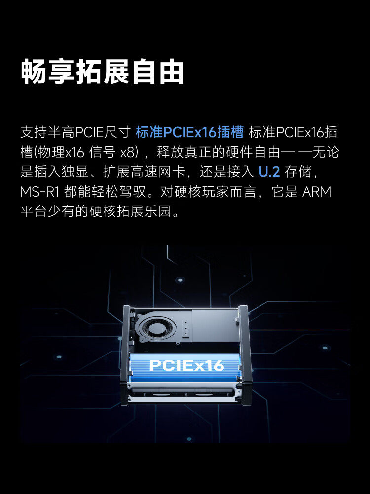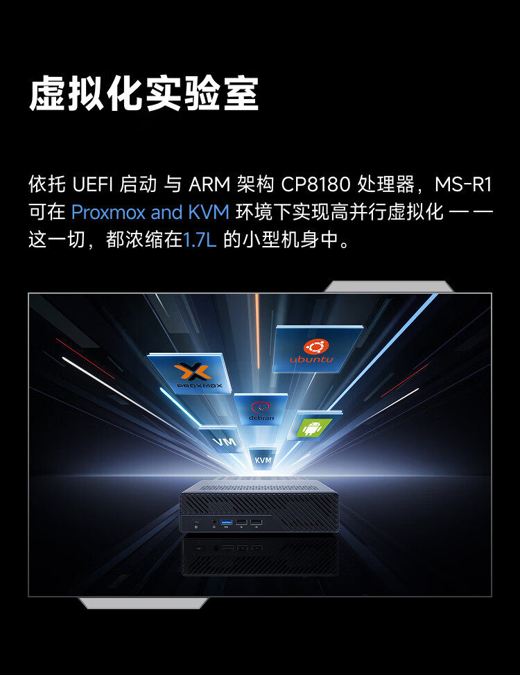 Mingfan Ms R1 Mini Host Computer, High-Performance Arm Architecture Processor Desktop Computer with Dual 10g Network Ports, Supports Uefi, Suitable for Gaming, Design, Business, and Office Use