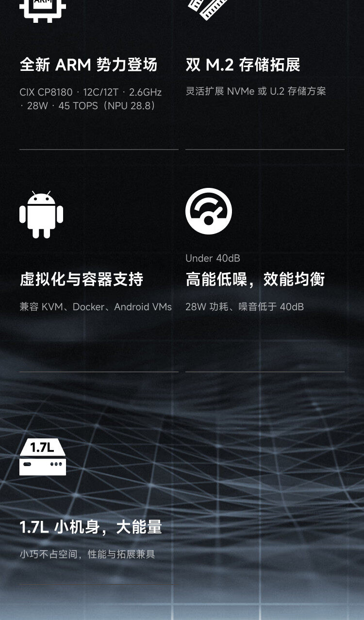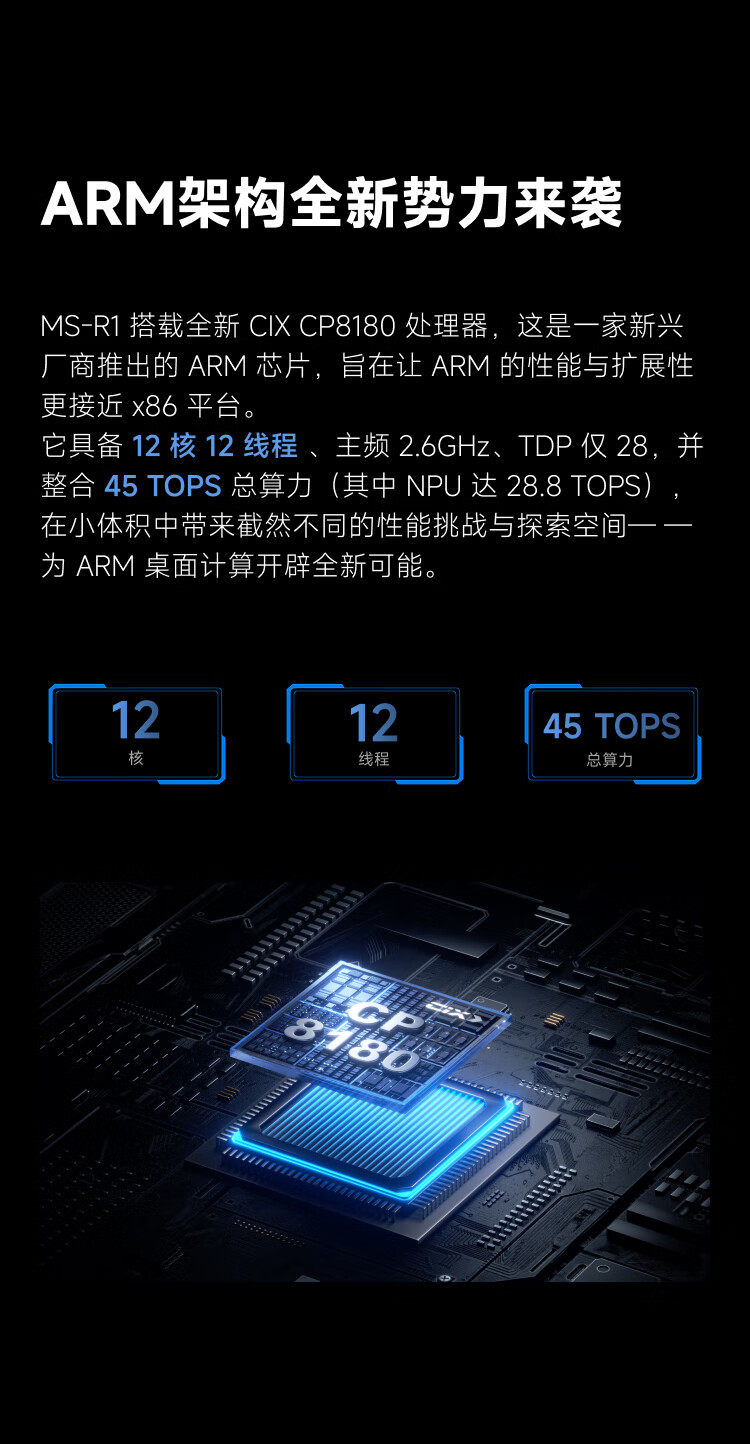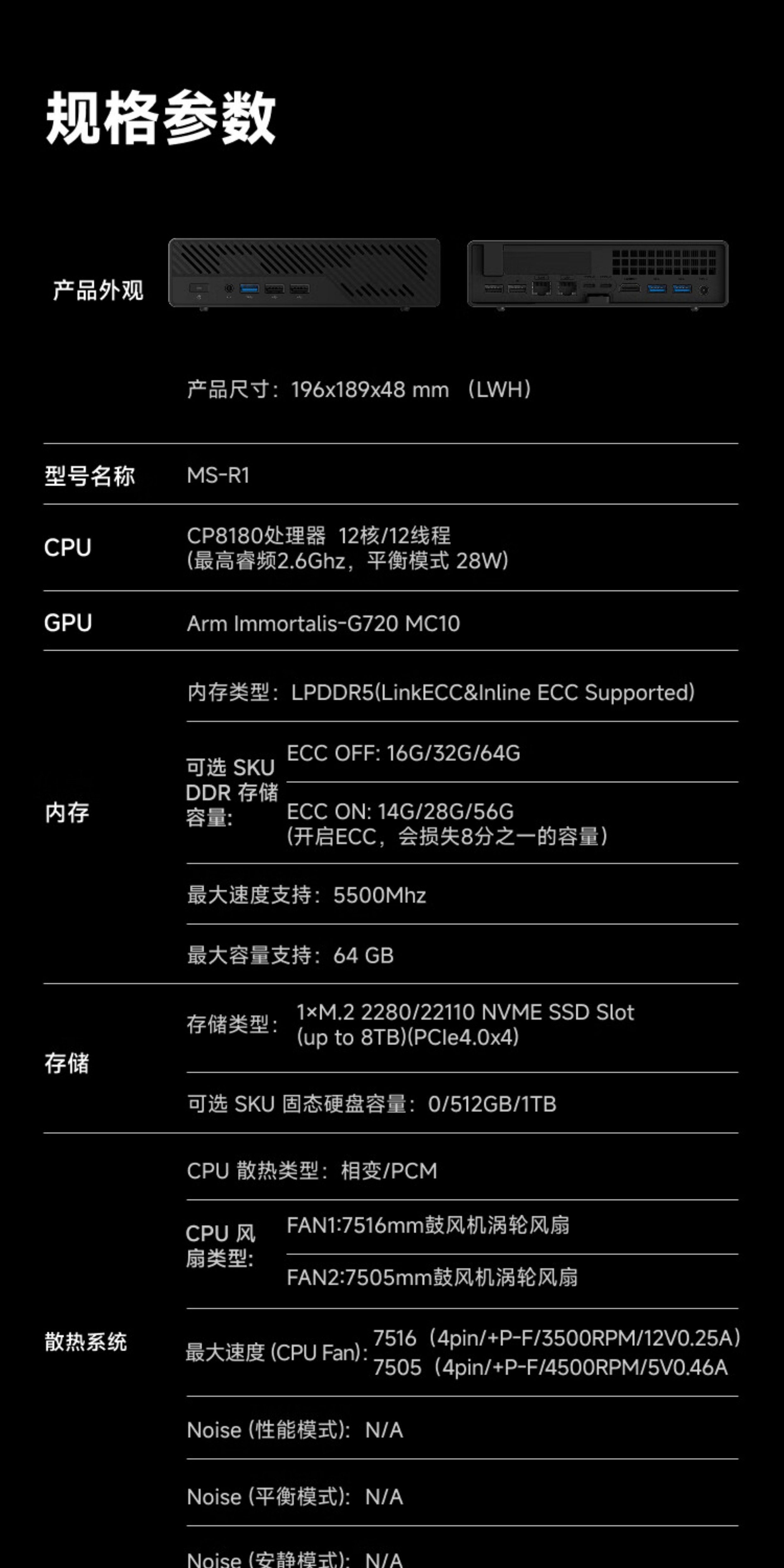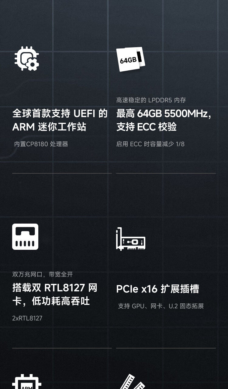 Mingfan Ms R1 Mini Host Computer, High-Performance Arm Architecture Processor Desktop Computer with Dual 10g Network Ports, Supports Uefi, Suitable for Gaming, Design, Business, and Office Use