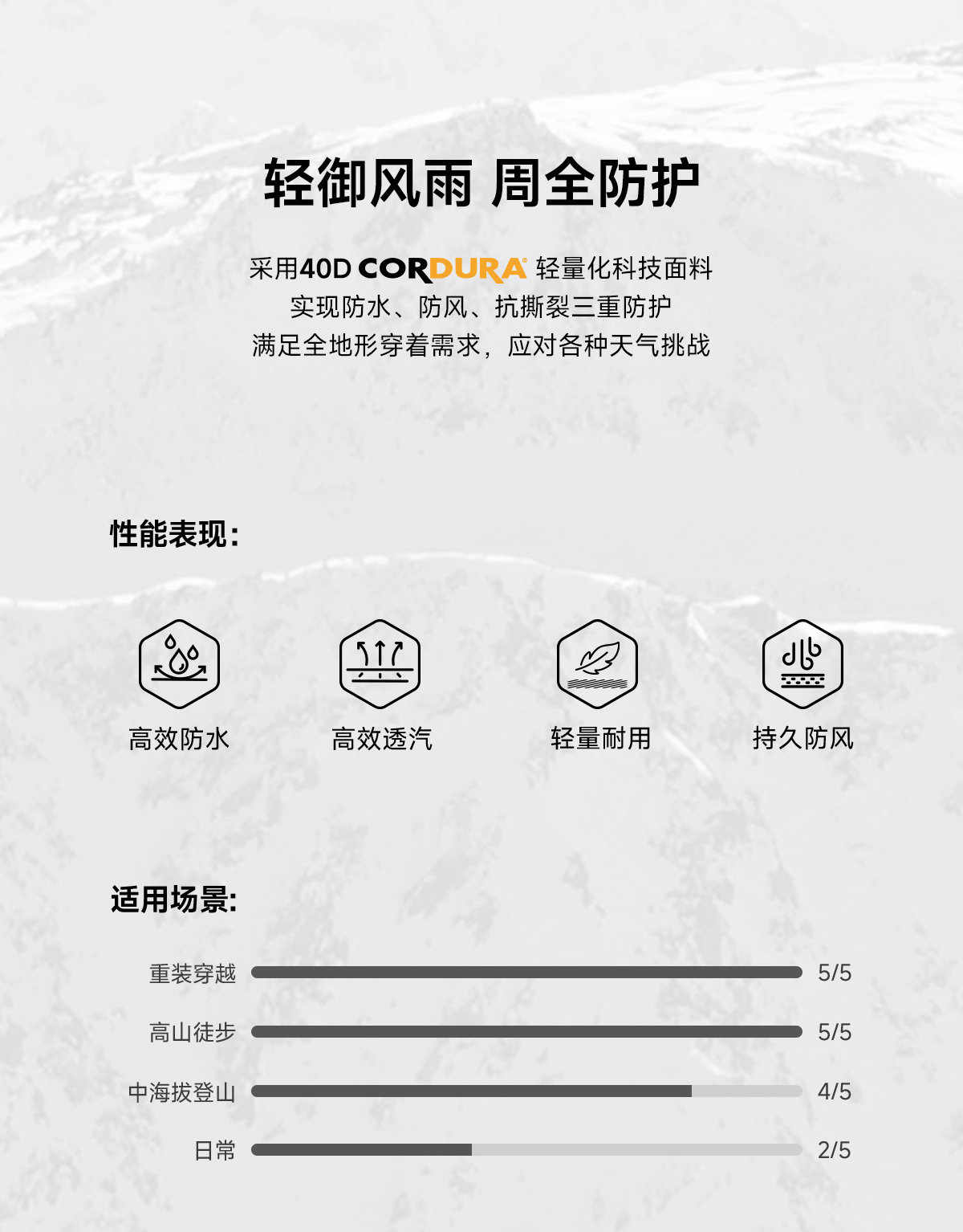 | Waterproof Breathability Index | More Than 20000mm |