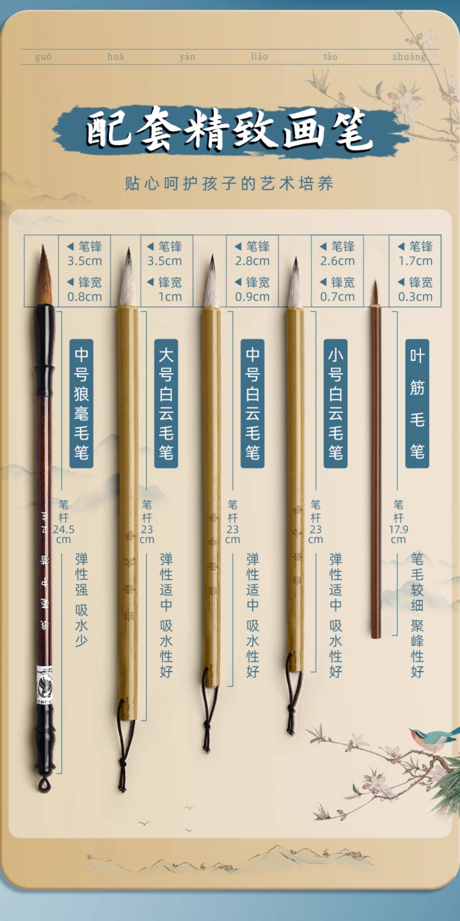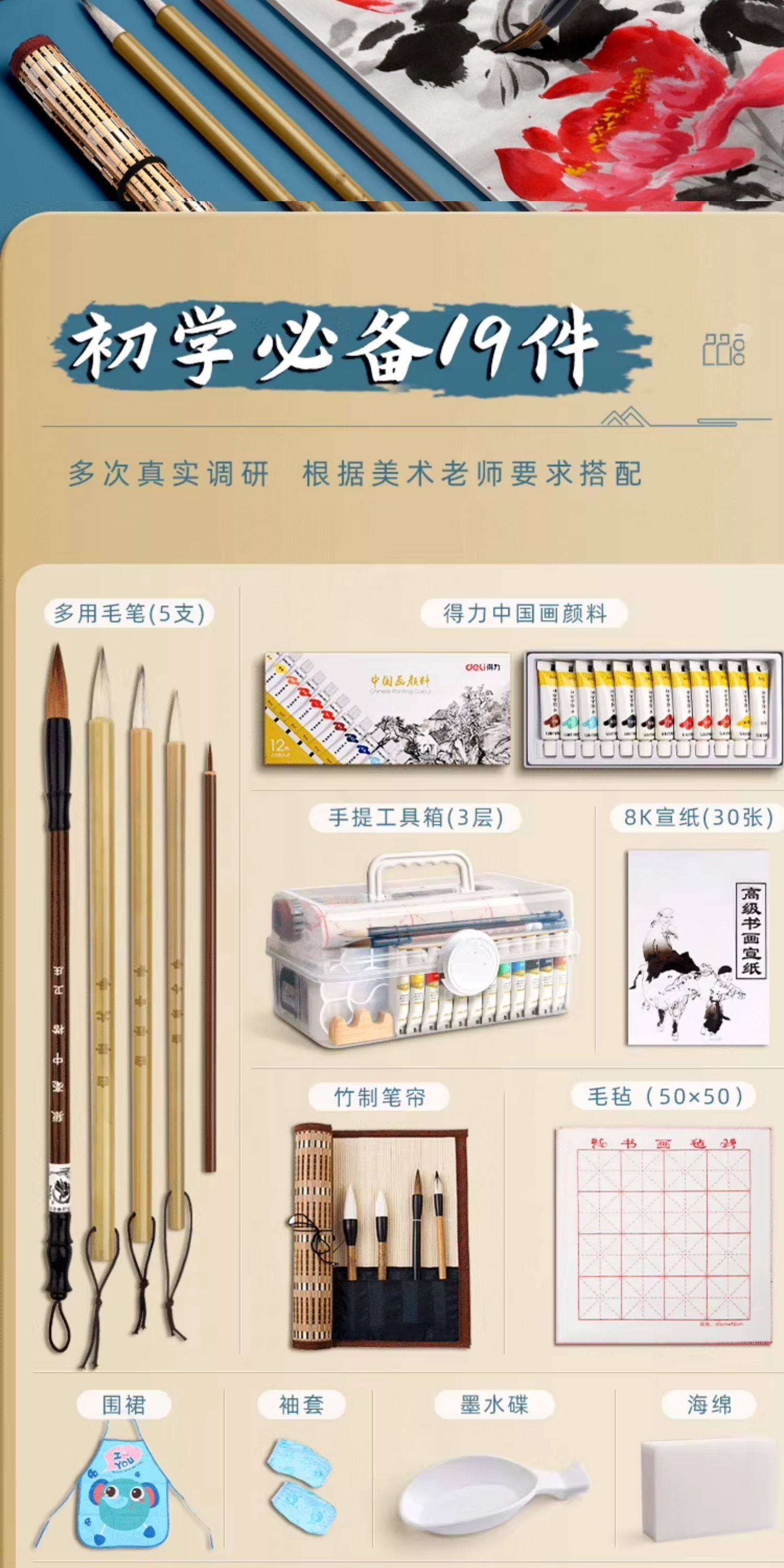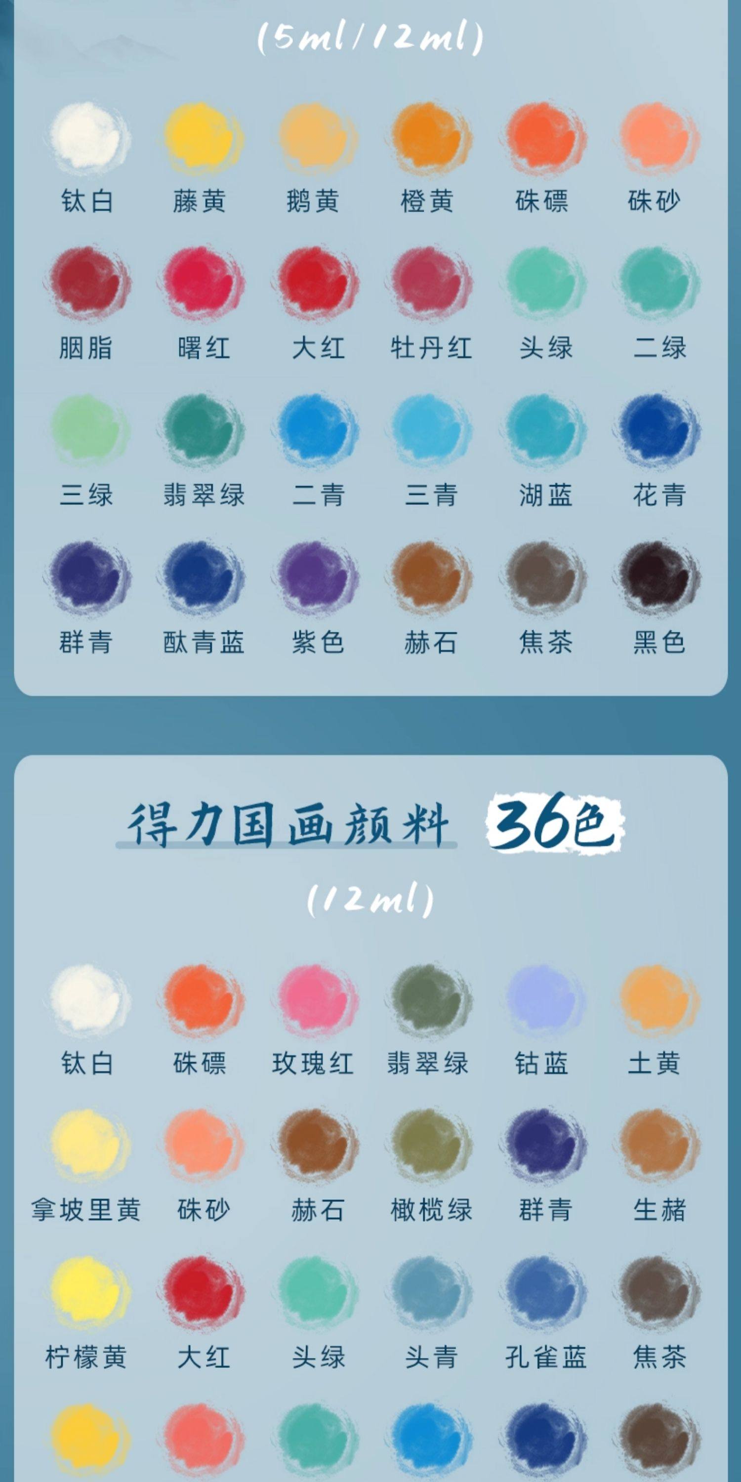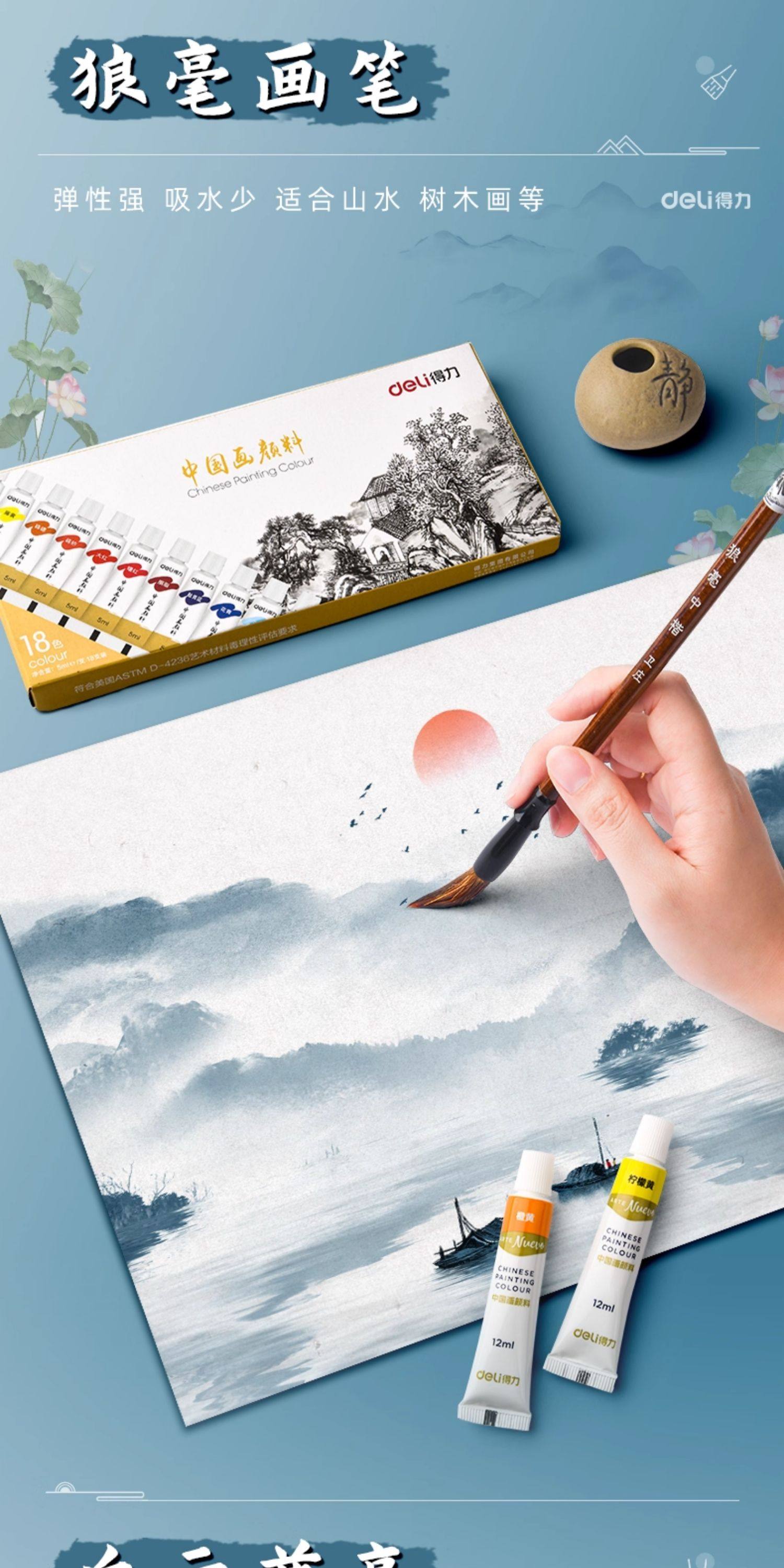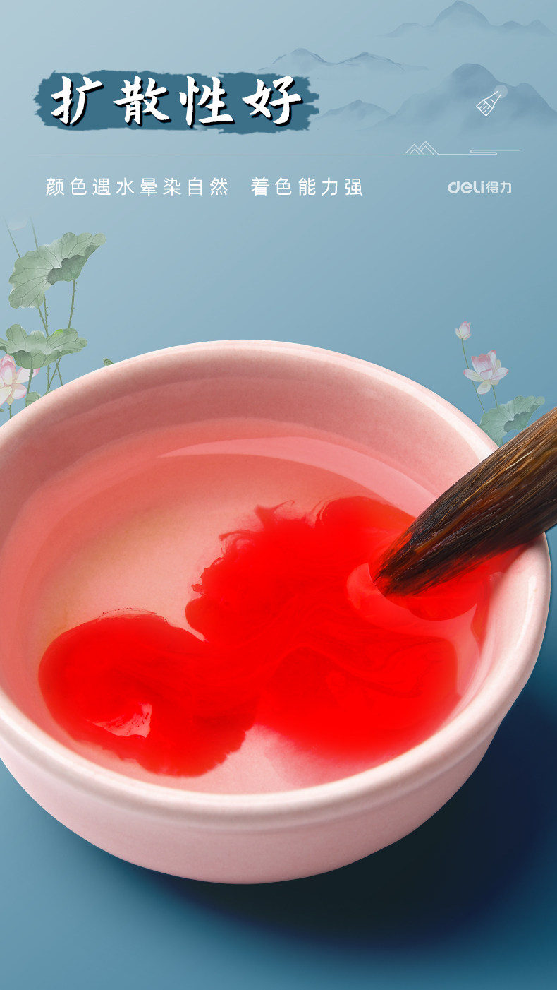 Deli Chinese Painting Pigment Beginner Set, Chinese Painting Supplies, Ink Painting Tool Set, Complete Set of 12 Colors, Suitable for Elementary School Third Grade and Middle School Students, Art Drawing Materials, Brush, 24 Colors