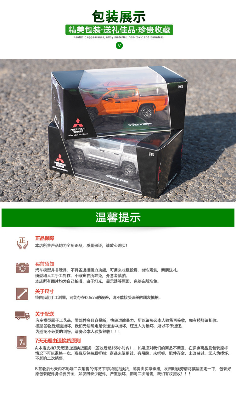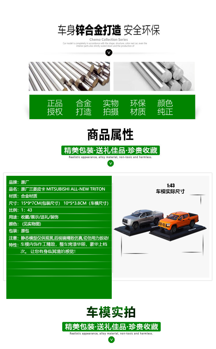 1:43 Original Mitsubishi Pickup Truck Model Mitsubishi All-New Triton Alloy Car Model