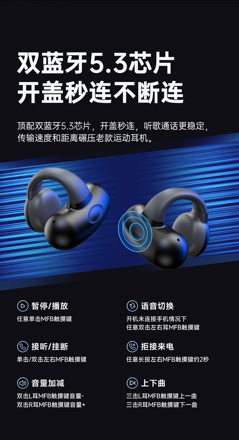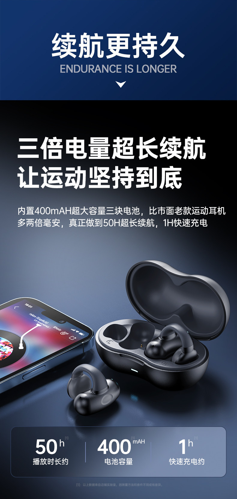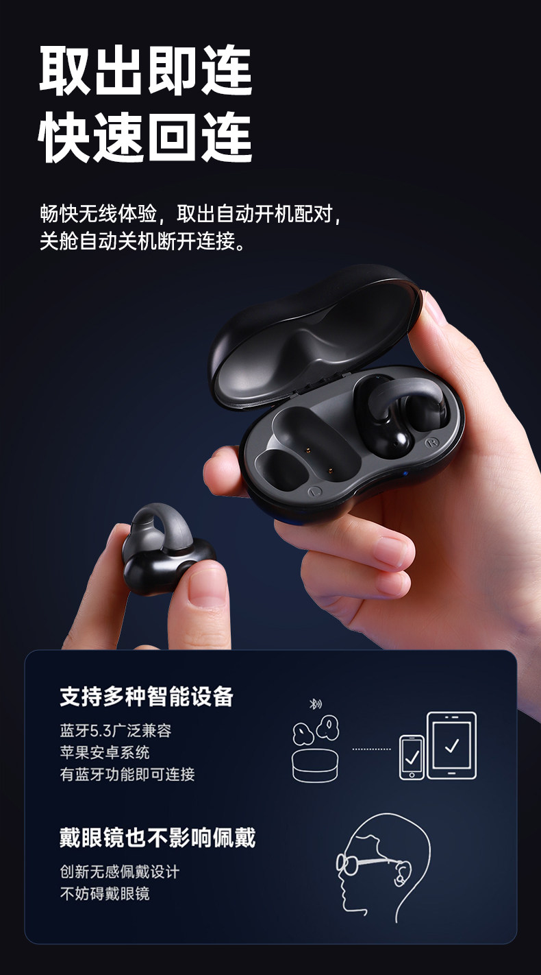 Bluetooth Earphones, Clip-On, Air-Bone Conduction, Wireless, Open-Type, Non-In-Ear, 2025 New Model, Suitable for Sports and Running, Comfortable to Wear
