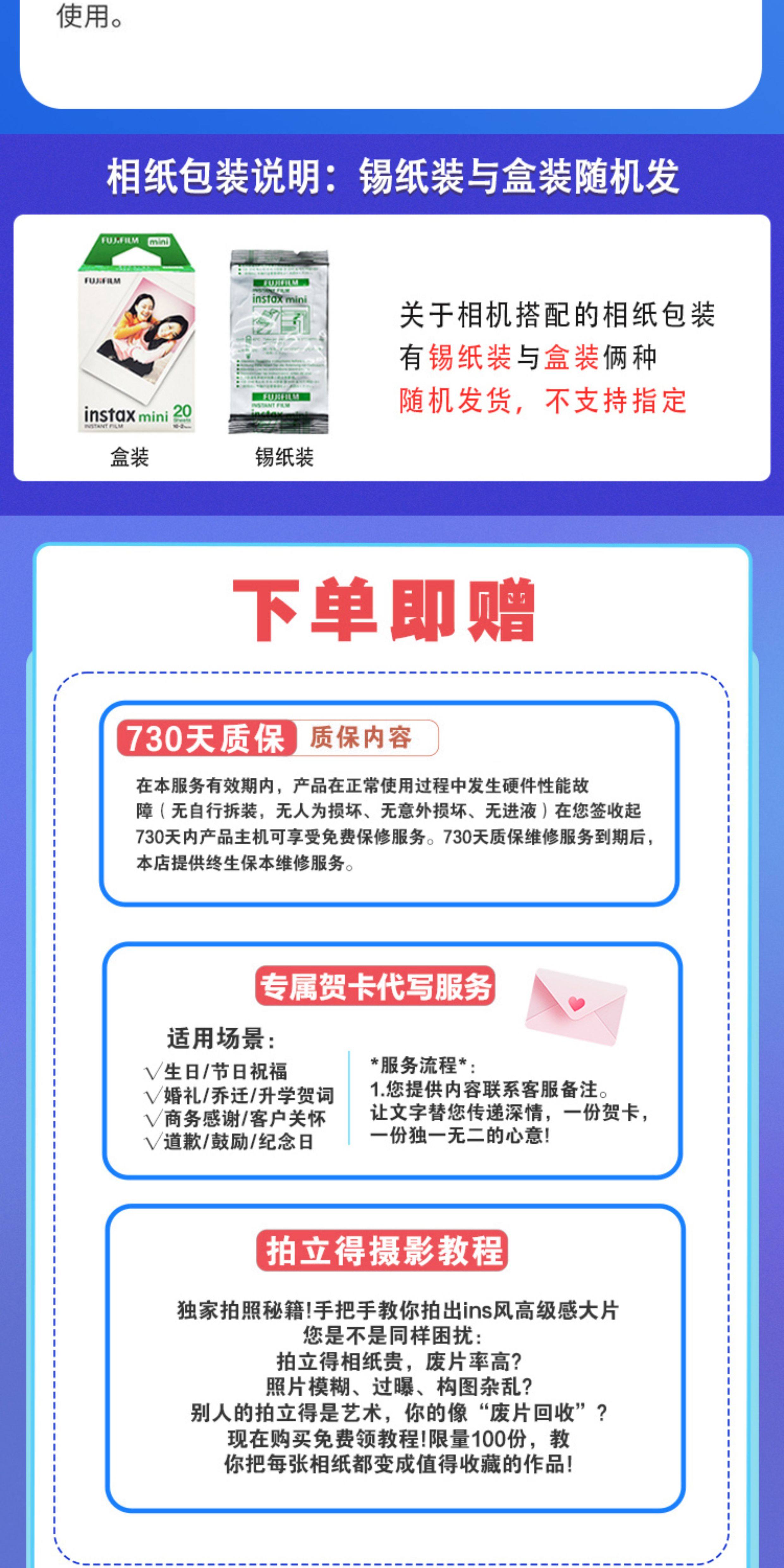 | Package Type | Official Standard Configuration (No Photo Paper, No Photos Can Be Taken),Officially Paired + 10 White Border Photo Paper Sheets,Officially Paired + 20 Sheets of White Border Photo Paper,Officially Paired + 40 Sheets of White Border Photo Paper,Officially Paired + 60 Sheets of Photo Paper with White Border |