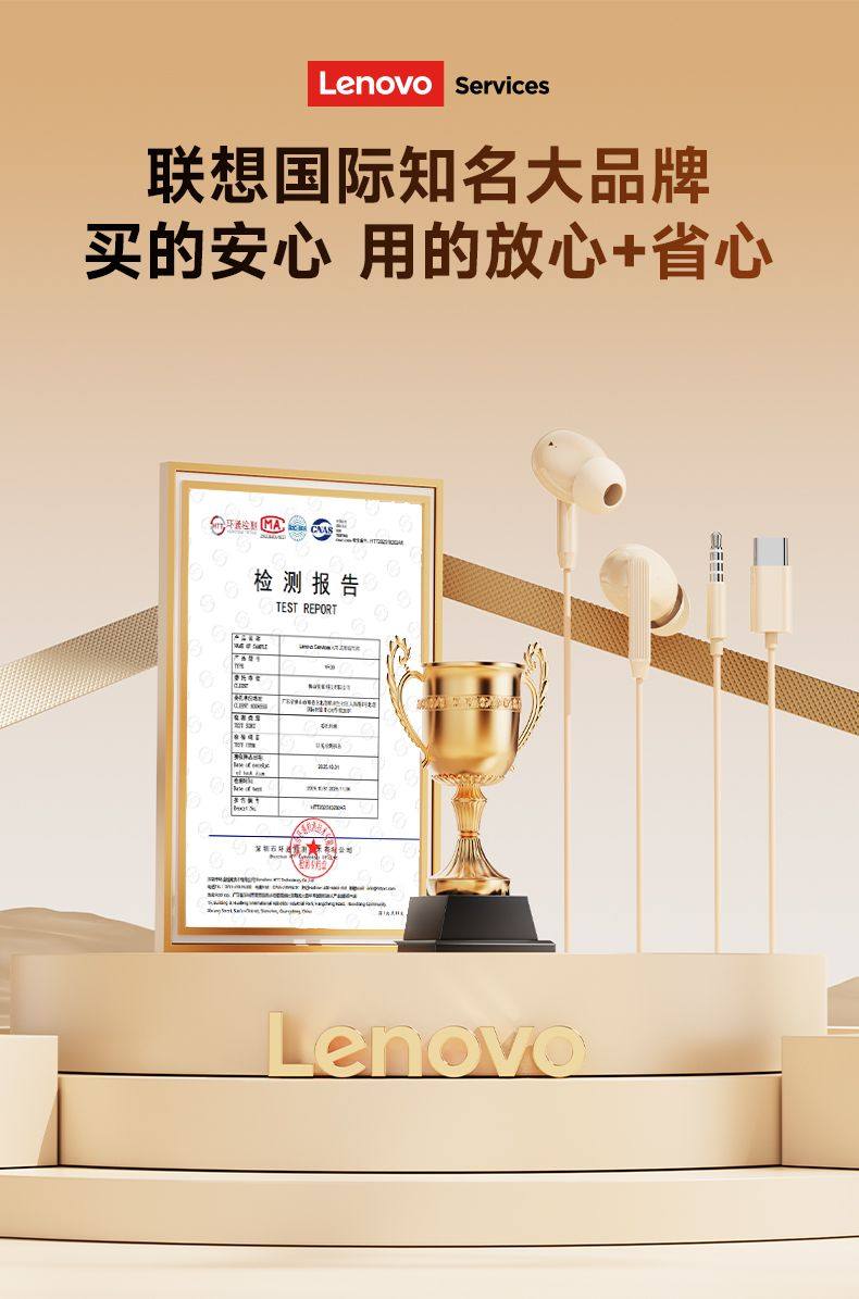 Lenovo Wired Headphones with Round Jack for Computers, In-Ear Type for Cet-4 and Cet-6 Listening Exams, University English Exam, Type-C Interface
