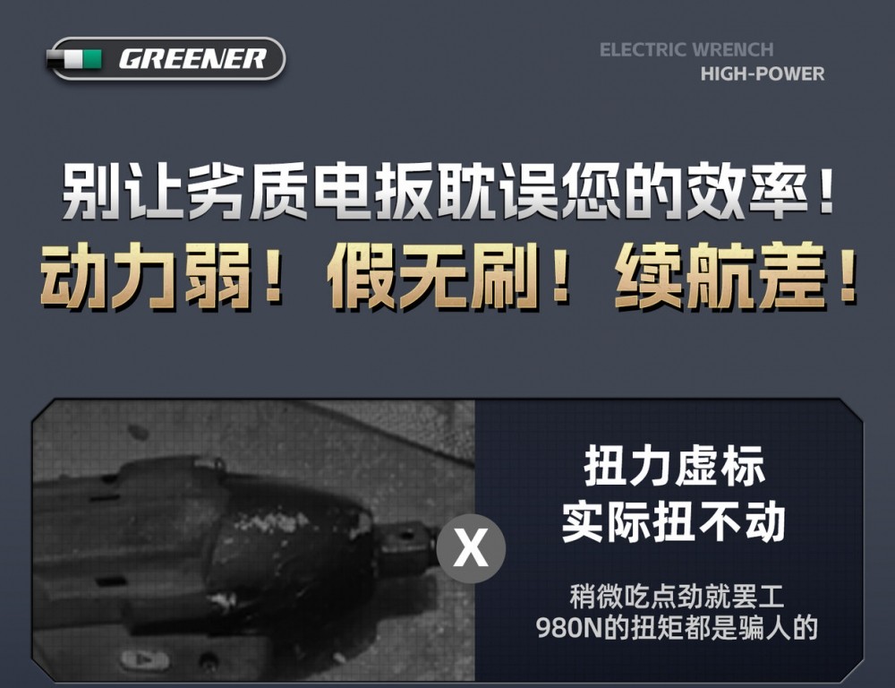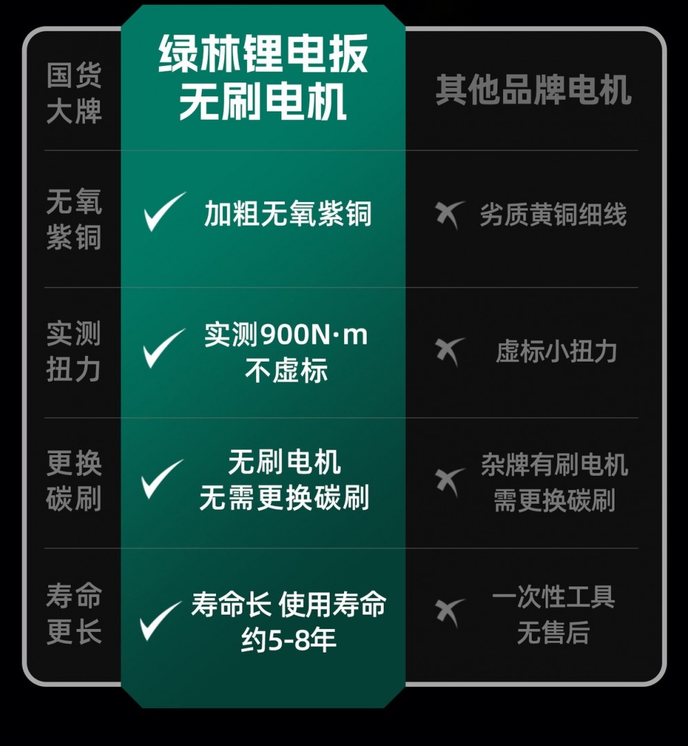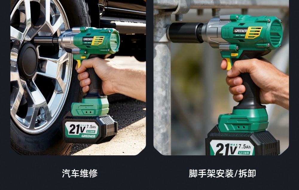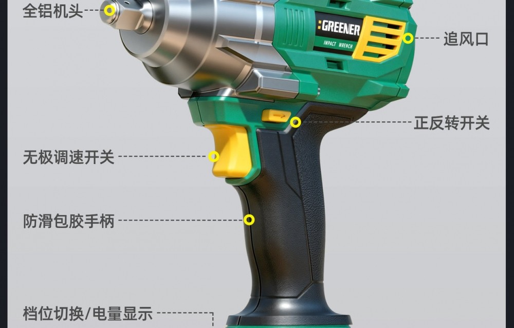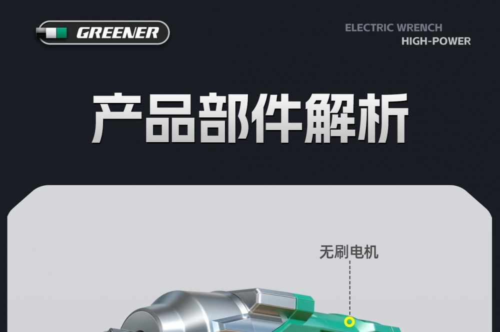 Green Forest High Torque Electric Wrench Brushless Lithium Impact Wrench Heavy-Duty Rechargeable Tool for Auto Repair