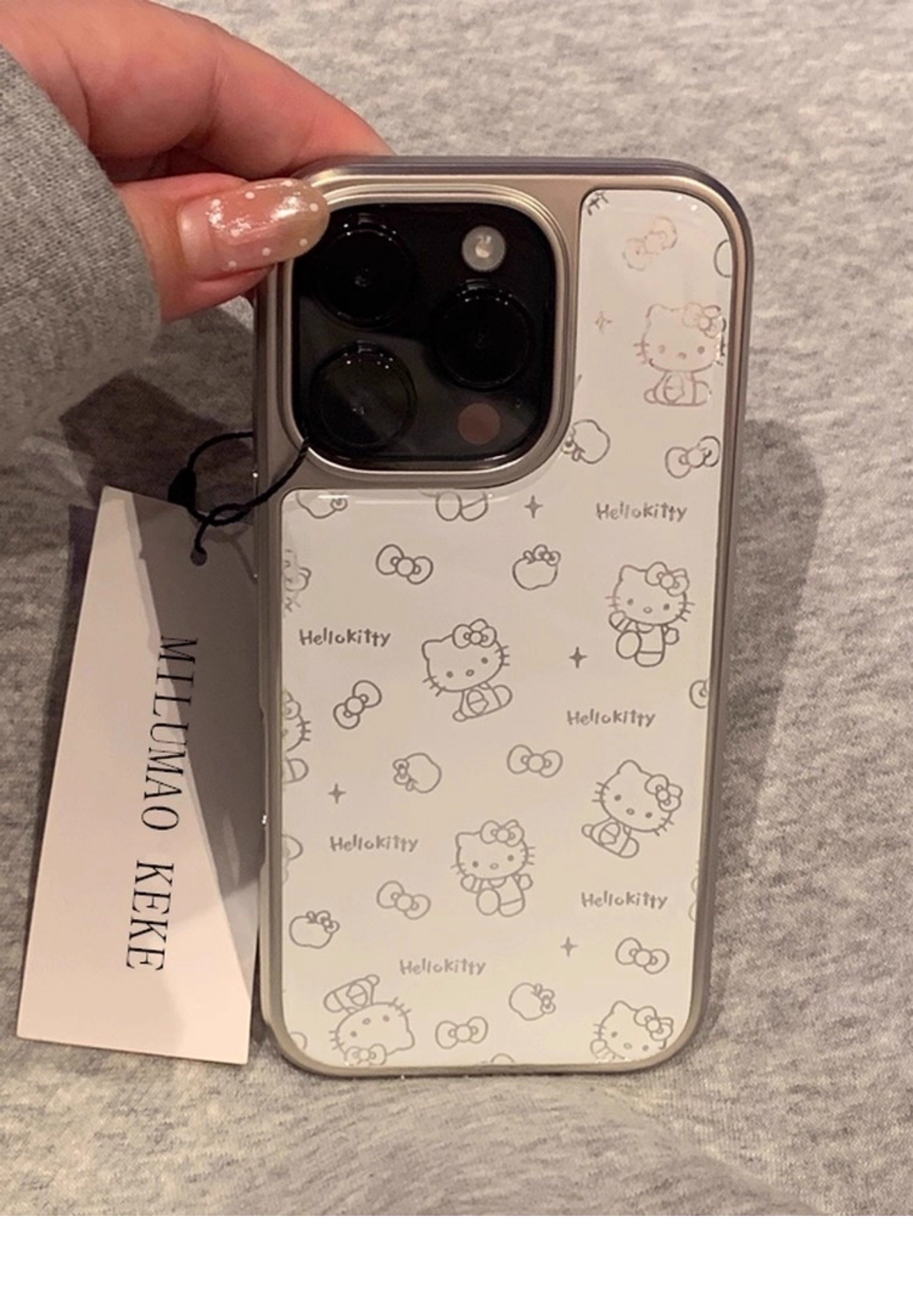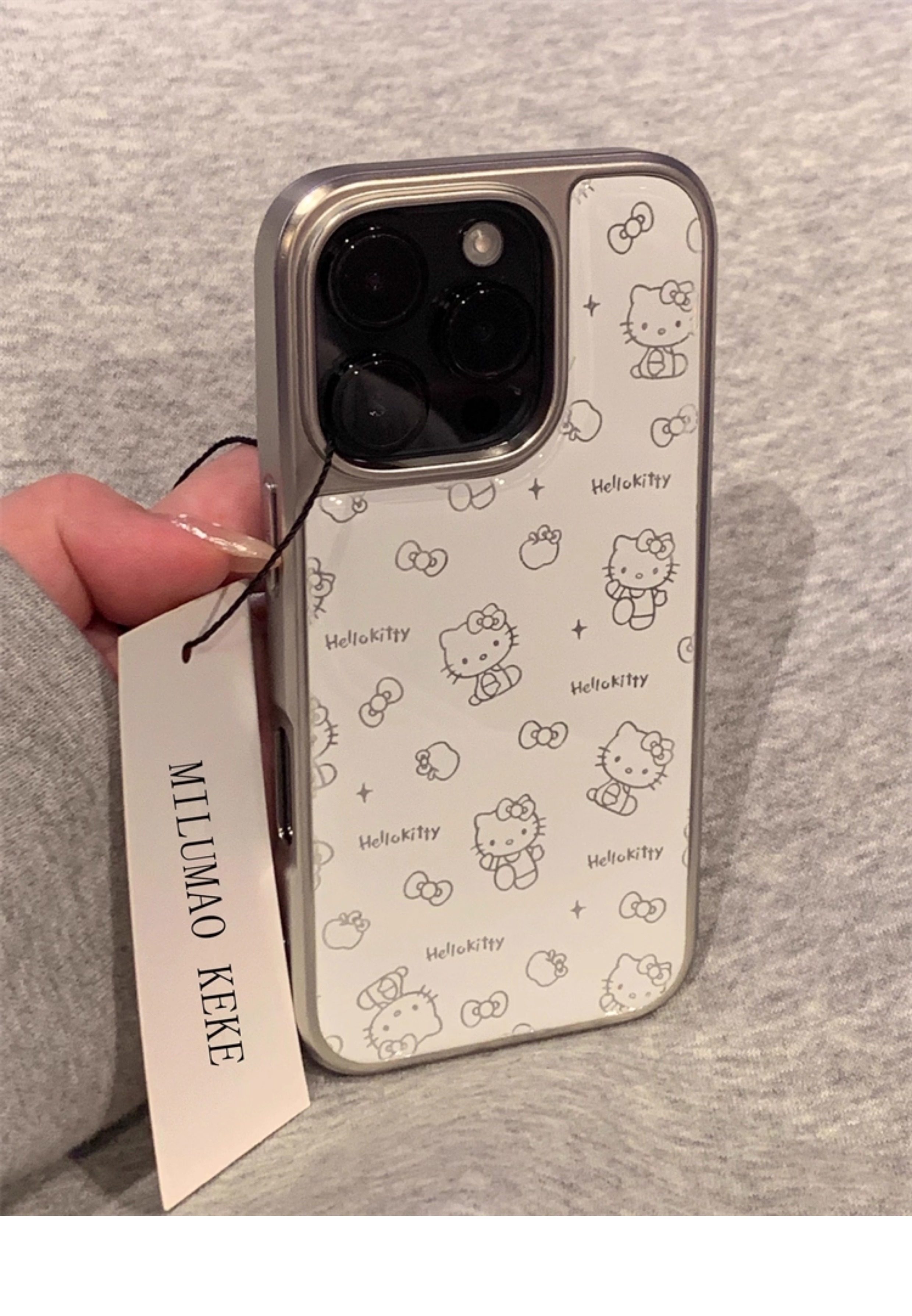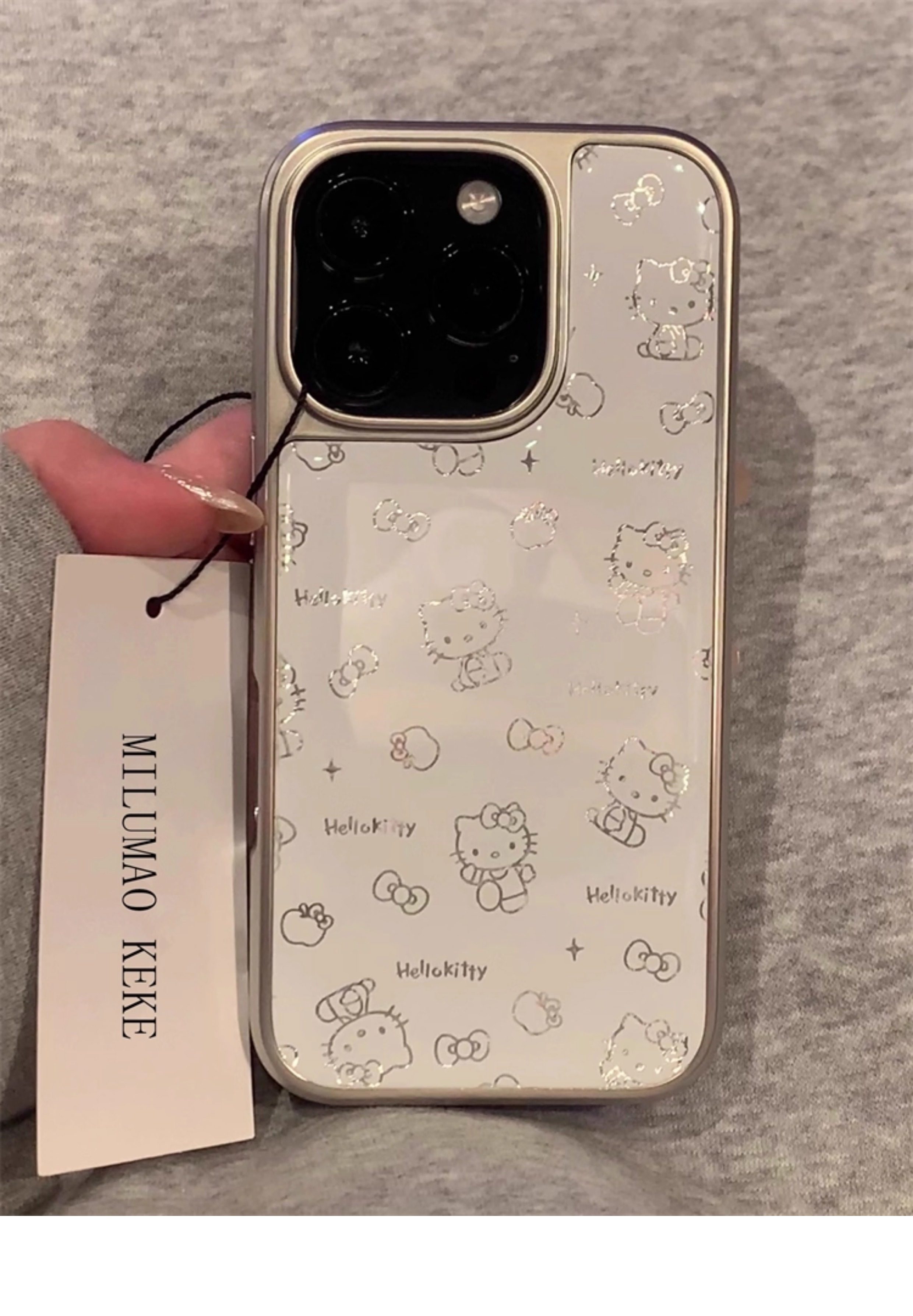 Ins-Style Super Cute Kitty Cat Electroplated Silver Edge Phone Case Suitable for Apple 17 Pro Max, iPhone 16 Pro Max New Model, 15 Cute, 14 High-End, 13 Internet Celebrity Female Model, 15 Pro Max Anti-Drop Case