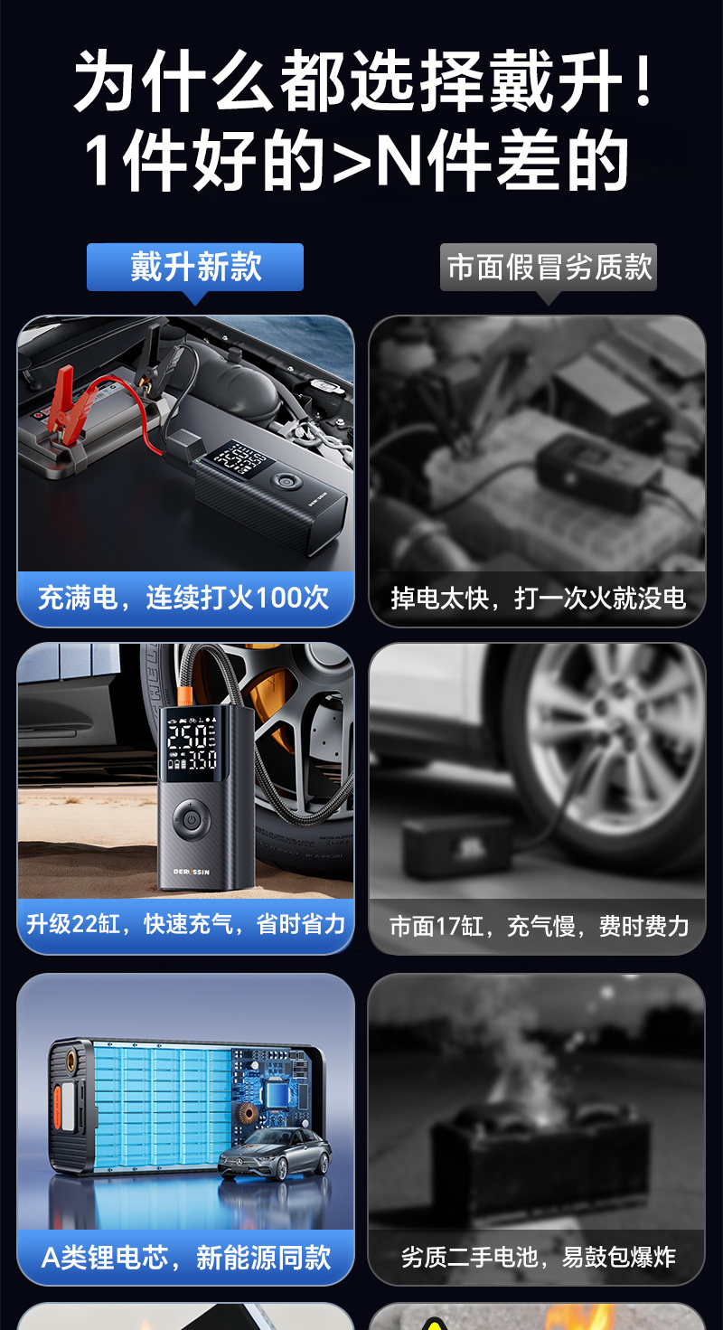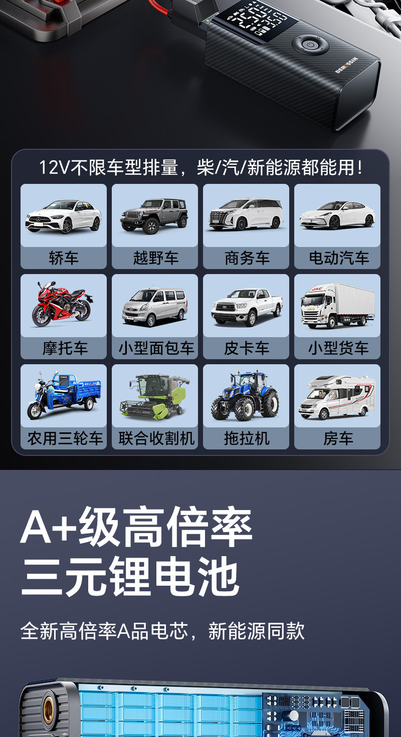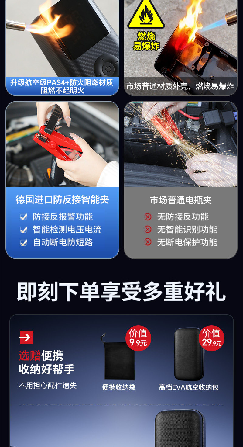 | Color Classification | [New Product Sales First] Sales Witness Quality!,[National Battery 3C Authoritative Certification] Turn into a Power Bank in Seconds★Multiple Authoritative Inspections★Use with Confidence, No False Advertising.,[German Import Smart Battery Clip] Multiple Protections for More Security★Reverse Polarity Protection★Prevent Battery Damage,[Recommended Product by International Rescue Team] Emergency Power Supply + Air Pump Multi-Function All-In-One Machine,Place an Order and Enjoy Multiple Gifts! Includes Free Shipping Insurance ★ Product Guaranteed ★ Look for the Official Authentic Product.,German Imported [Smart Jump Starter + Air Compressor] - Universal Displacement Compatibility★Zero Power Instant Start★Bold Pure Copper Clip★Free Storage Bag,German Imported [Smart Jump Starter + Air Compressor] - Universal Displacement Compatibility★Zero Power Instant Start★Bold Smart Pure Copper Clip★Free Eva Handbag,German Imported [Smart Jump Starter + Air Compressor] - Universal Displacement Compatibility★Zero Power Instant Start★Upgraded 15-Proof Anti-Reverse Smart Clamp★Free Storage Bag,German Imported [Smart Jump Starter + Air Compressor] - Universal Displacement Compatibility★Zero Power Instant Start★Imported 18 Anti-Reverse Connection Smart Clamping Eva Carrying Case,Rescue Team-Grade Heavy-Duty Jump Starter & Air Compressor Combo★Unlimited Displacement / Zero-Electricity Instant Start Imported 22 Anti-Reverse Intelligent Clamp,For Auto Repair Shops [Smart Power Supply + Air Pump] Large Capacity Enhanced Version ★ Unlimited Displacement / Zero-Electricity Instant Start Imported 22 Anti-Reverse Intelligent Clamp,German Imported [Smart Jump Starter + Air Compressor] - Universal Displacement Compatibility ★ Zero Power Instant Start ★ Upgraded 15-Proof Anti-Reverse Smart Clamp |