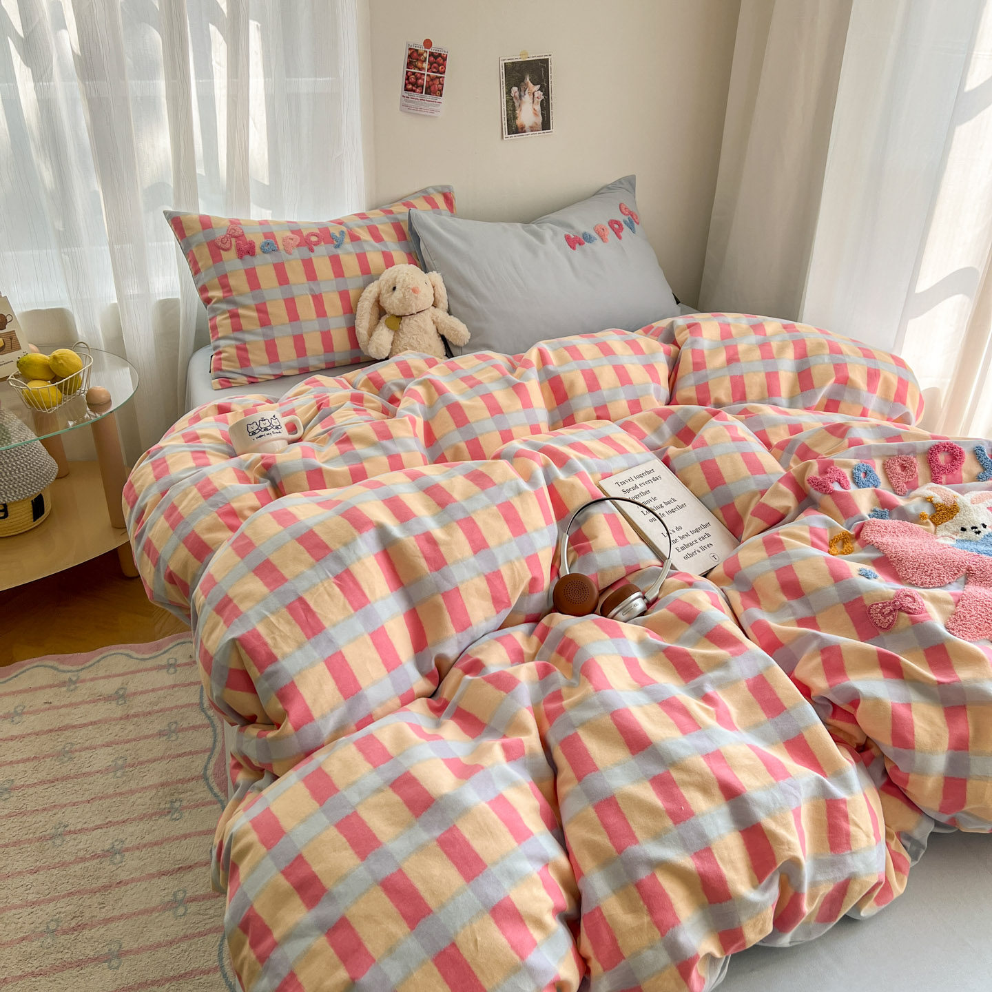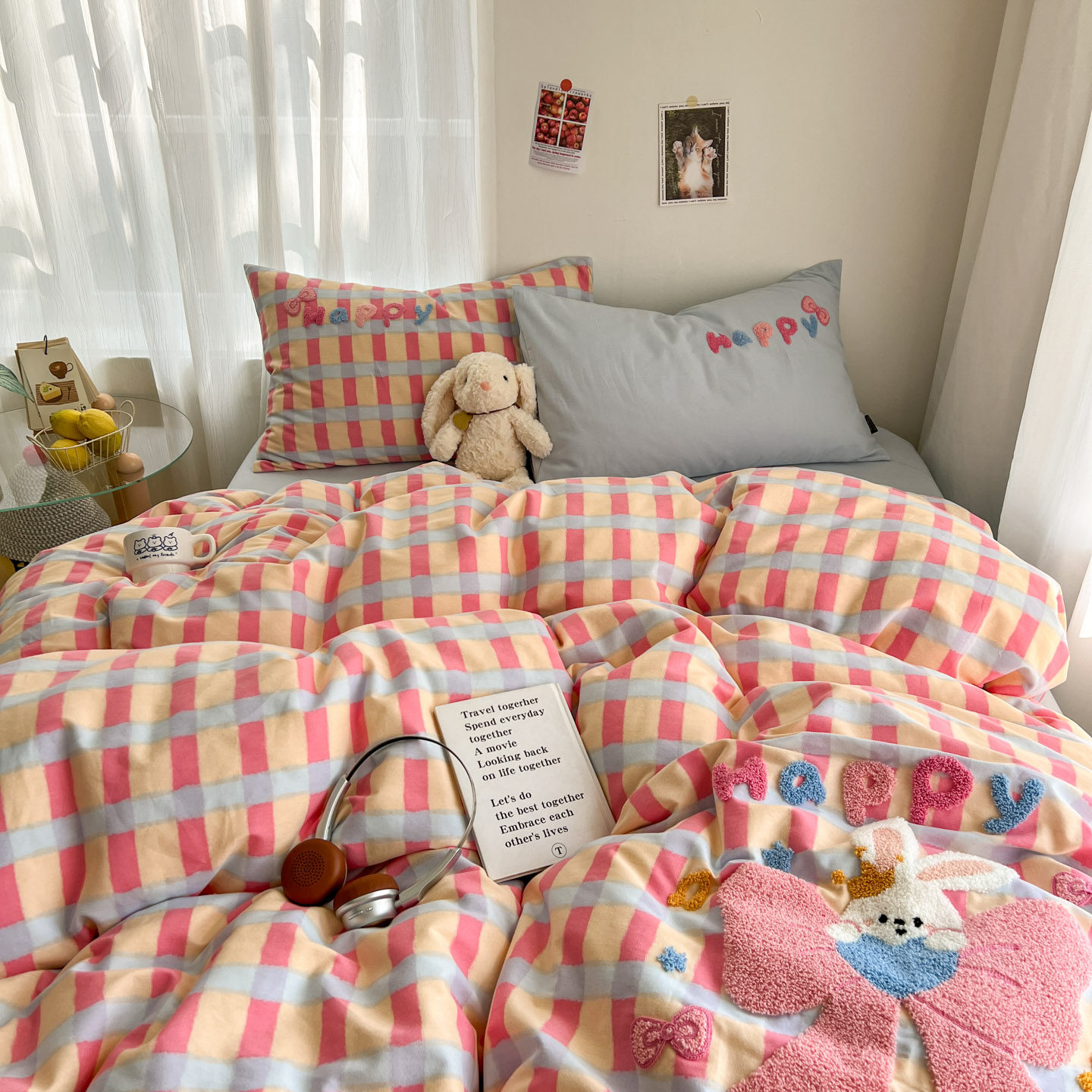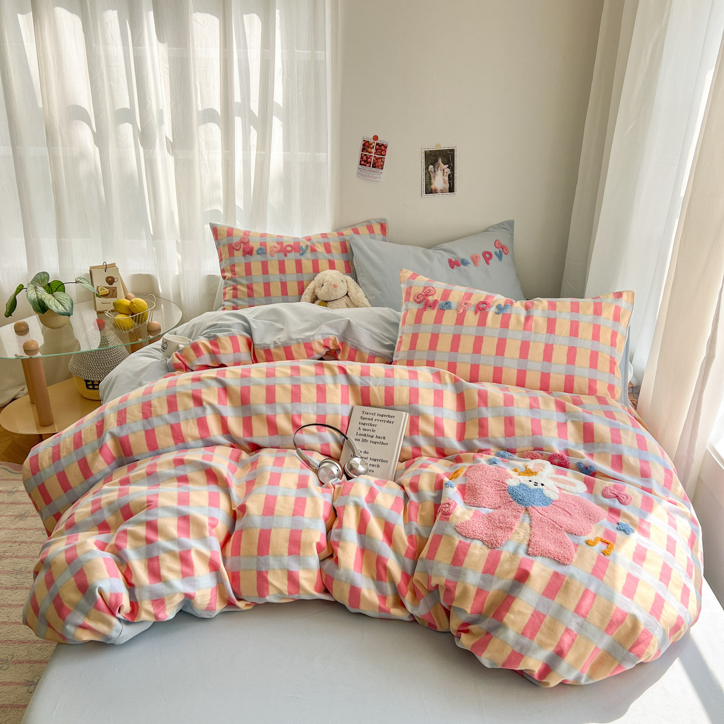 Thickened Brushed Cotton Four-Piece Set, Pure Cotton Towel Embroidered Cartoon Children's Duvet Cover, Bed Sheet Three-Piece Set, Bedding