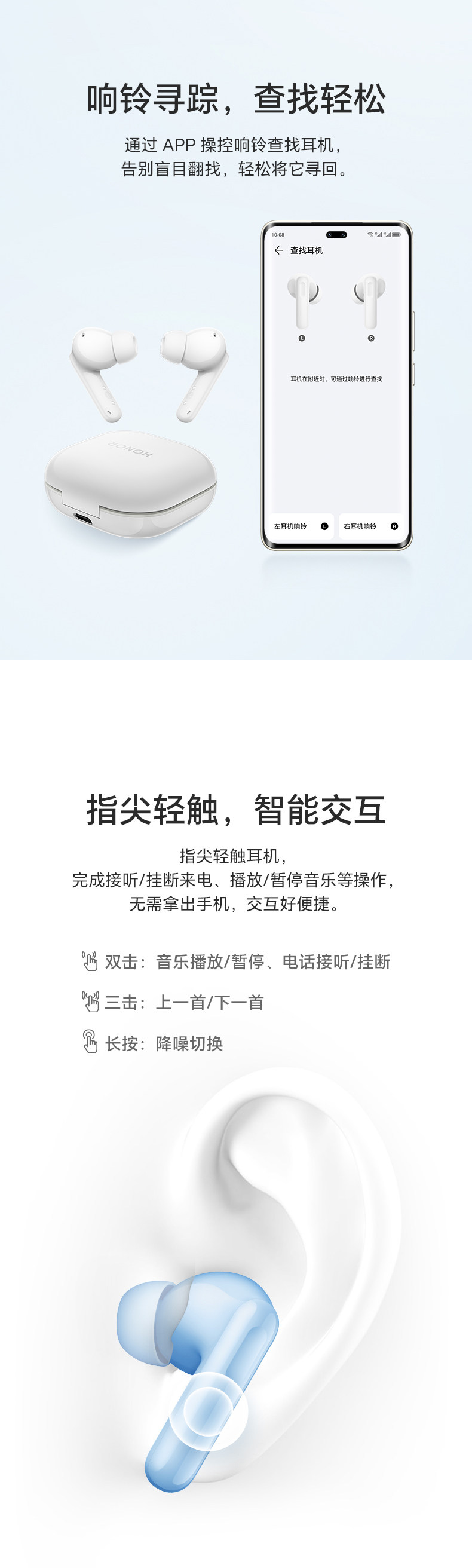 Honor Earbuds S Wireless Bluetooth Headphones, New In-Ear Style, Long Battery Life, Noise Reduction, Sports, Waterproof, High Appearance Value