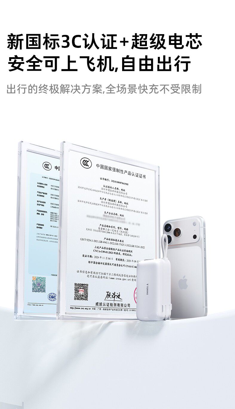 [Same Model as Papi Jiang]Turas 3-in-1 Pro Rechargeable Power Bank 2026 New Model 3C Certified Airplane-Friendly Fast Charging Energy Bar Mobile Power Bank Large Capacity Compatible with Apple 17