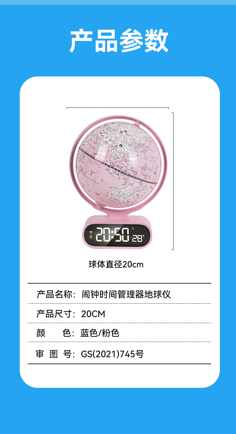 Talking Globe Alarm Clock, Student and Children's Learning Supplies, Pink Luminous Digital Display, Creative Gift